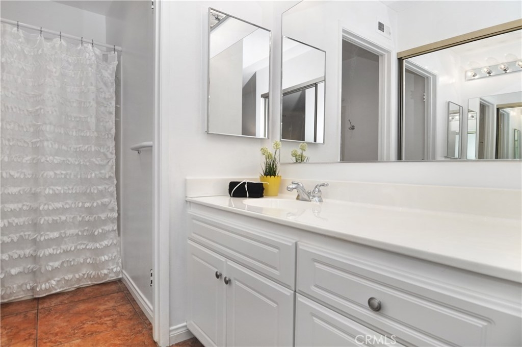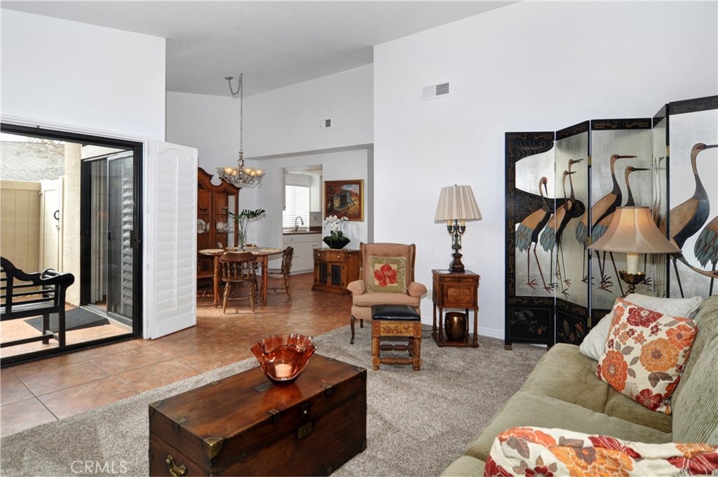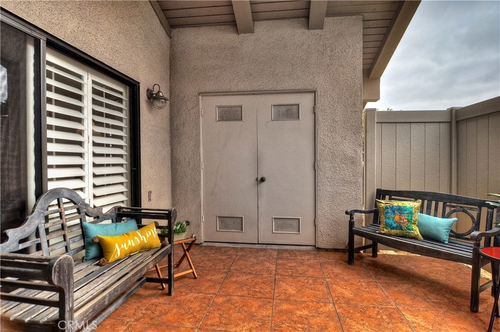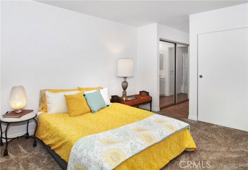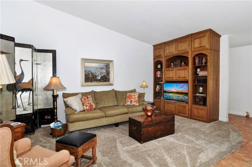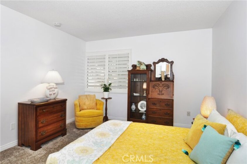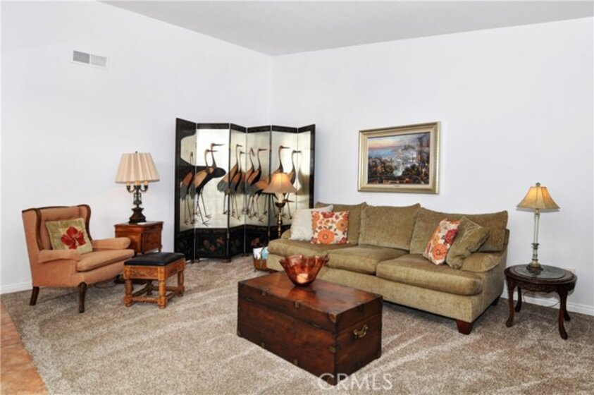 This beautiful light and bright 2 bedroom 2 bathroom single story, Pacific floor plan, corner unit was recently freshly painted and is move in ready condition. The kitchen has white cabinetry, Corian counters and the gas stove provides plenty of space for preparing delicious meals. This lovely home affords 2 sliders with plantation shutters that lead to a private patio from the spacious living room and the dining area off the kitchen. The large private master bedroom includes a huge closet, vanity area and a shower/tub combo. The second bedroom works well as a guest room or an office. A second full bathroom with a shower accommodates all your guests. A combination of tile and new carpet run throughout the home. Enjoy this wonderful 55+ community which offers 2 swimming pools, 2 spas, tennis courts, putting green, gym, shuffle board, a ceramic room, wood shop, a library and billiard room, plus a calendar full of activities for each month. Great location in the community and close to guest parking. Come and visit this gem soon!