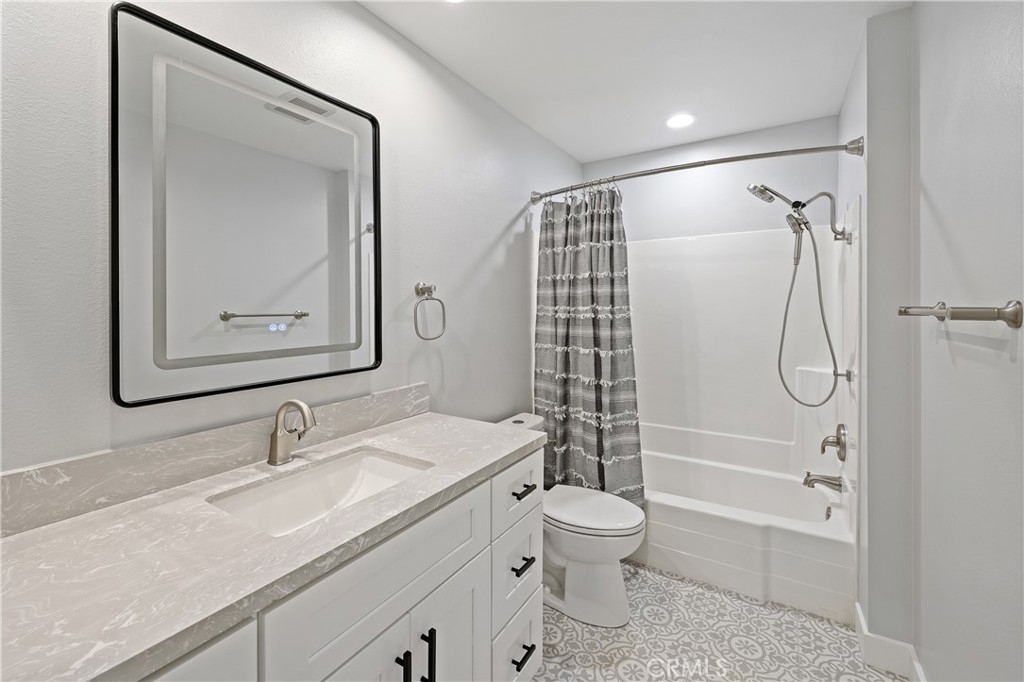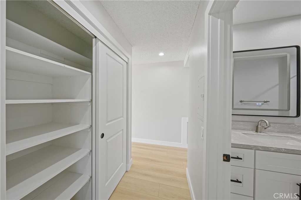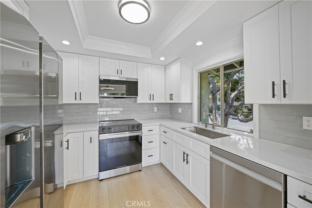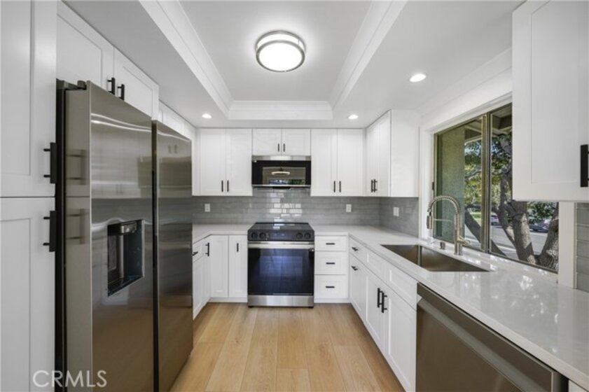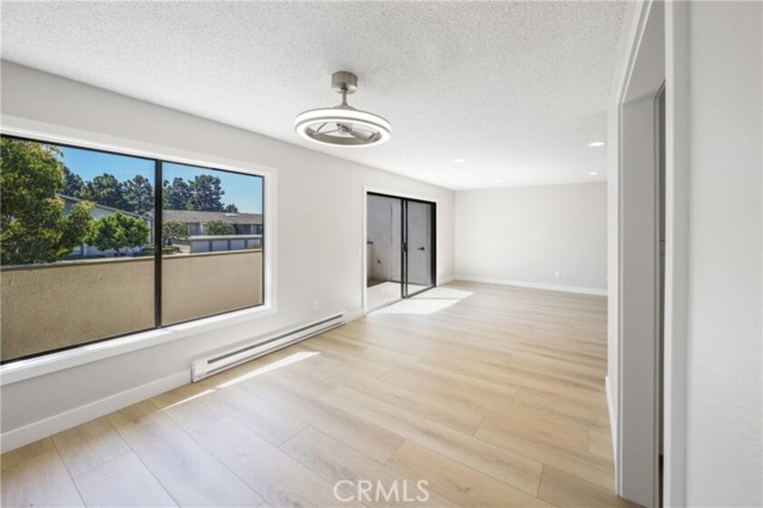 Just newly beautified and custom upgraded, beach breezy 1 bed, 1 bath upstairs condo in Huntington Landmark 55+ guard gated community. This perfectly located, west facing, ocean air comfortable ,remodeled space with brand new just installed 12 mm faux wood floors and brand new upgraded appliances including water piped refrigerator, oven/stove and microwave and dishwasher. The new Quartz counter top and shaker cabinets designed with built in lazy Susan in corners, built in double trash drawer, fancy deep kitchen sink and faucet. The bathroom has new vanity, tile flooring, heated/light up mirror, upgraded faucets. This condo has new doors and handles, two new ceiling fans, and new heating.The washer/dryer is included. This incredible neighborhood includes an RV park, car washing stations. There is a huge pool, clubhouse also with recreation and club rooms. There are tennis and pickle ball courts. Events are scheduled monthly. This is quiet enough for introverts while still fun enough for outgoing individuals. HOA includes water. The balcony adds to outdoor life style. Please come check it out as soon as possible.