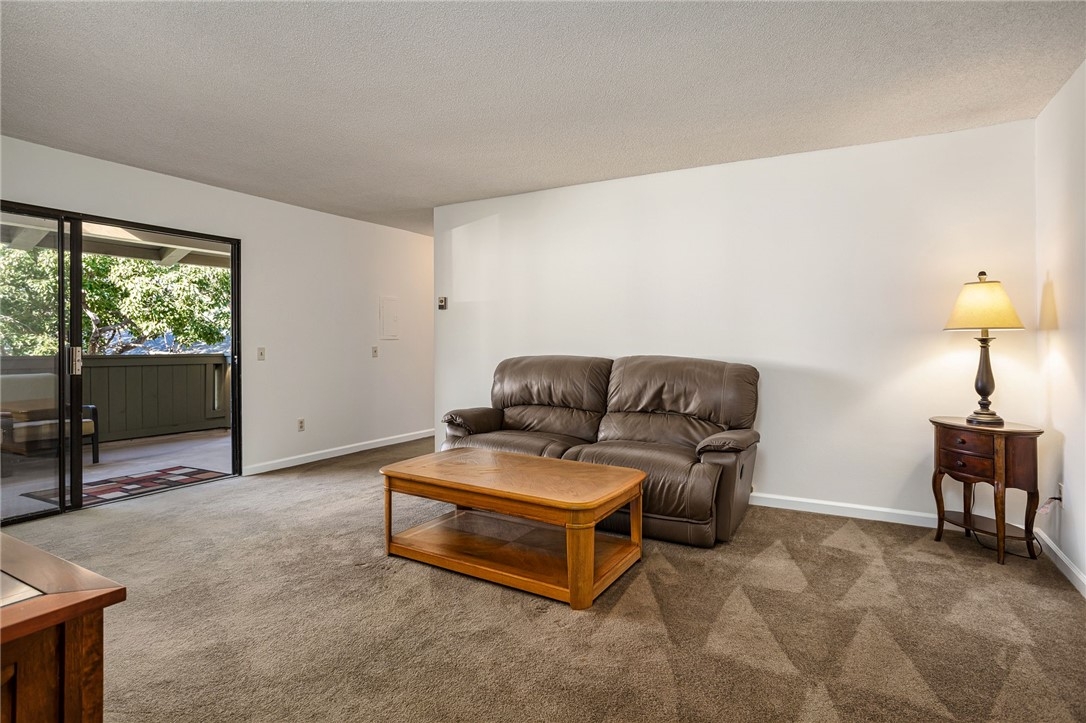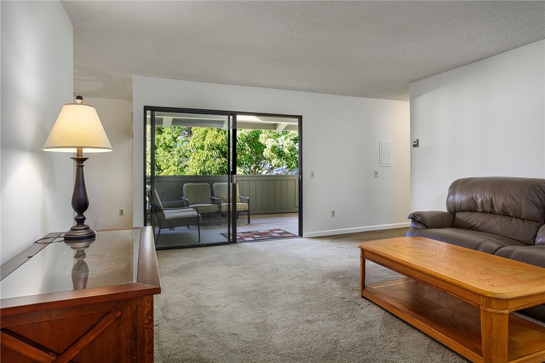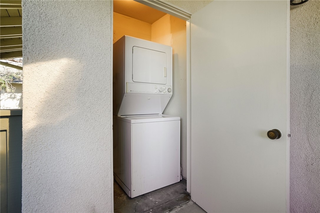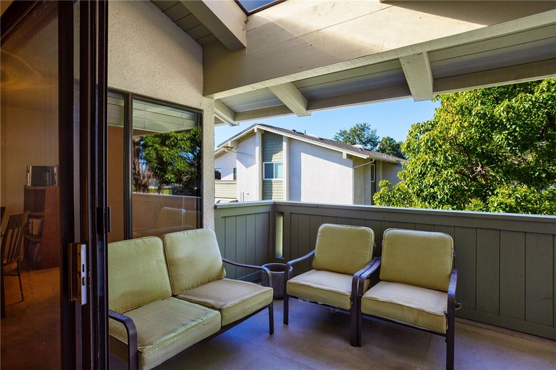 Fantastic opportunity for resort living! Located less than a mile from the beach, this fabulous upper-level home features a spacious living room with sliding glass doors to an oversized, covered balcony with tree top views. There is a large dining area with ample space for a dining room table and hutch. The kitchen has plenty of cabinet space, a new stove and microwave and is very well lit by recessed lights and natural light through the window over the sink. The large bedroom has a walk-in closet which is completely cedar lined. The bathroom is remodeled with a brand new vanity, light fixture and mirror. Freshly painted throughout. Washer and dryer are located in a closet on the balcony. You will also become part owner to the stair chair that will take you up and down the stairs with ease. The one car garage is very close to the stairs and there is plenty of additional parking. This particular location in the complex together with the advantages of the second floor provide both privacy and tranquility while still being close to all the fun amenities. This private, 55+ community is gated with a guard at the entrance and there is also security roaming the grounds. The amazing list of amenities include a huge clubhouse with kitchen, 2 swimming pools & spas, lighted tennis courts, pickle ball courts, shuffle boards, putting green, horseshoes pits, outdoor BBQs, Gym, billiards room, sewing room, wood shop, ceramic room, card room, library and expansive, well manicured greenbelts. There is also RV Parking and lots of scheduled events. I'm just sorry if you aren't 55 yet :)
