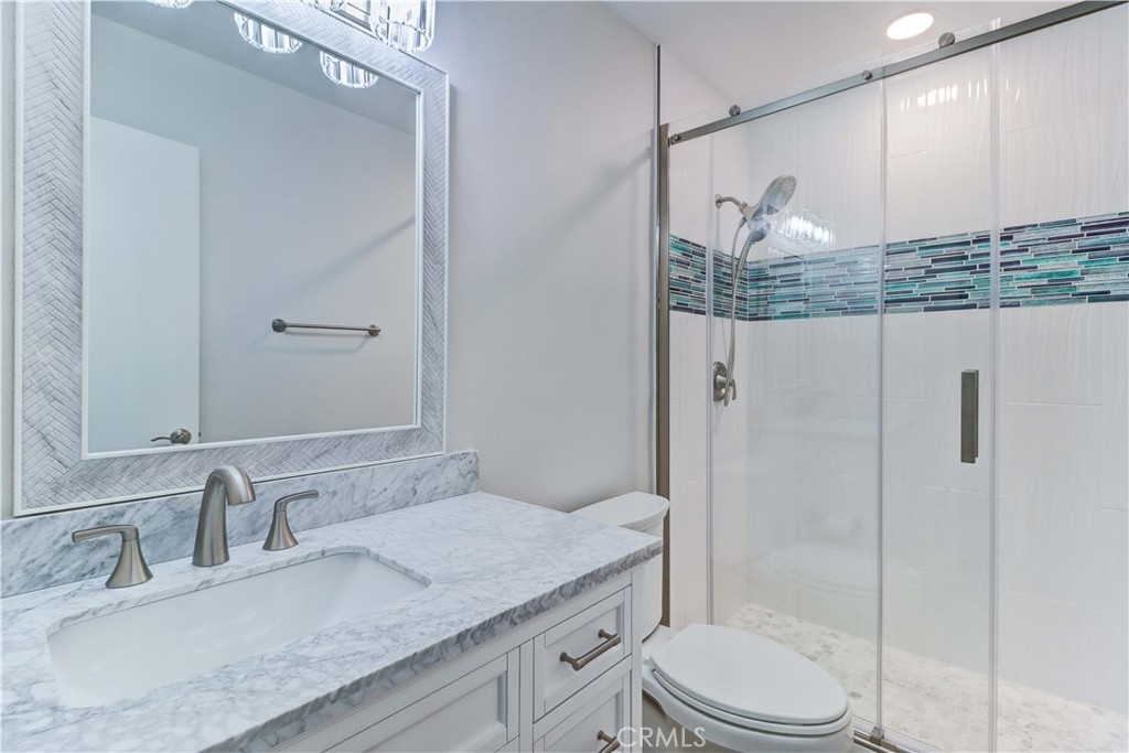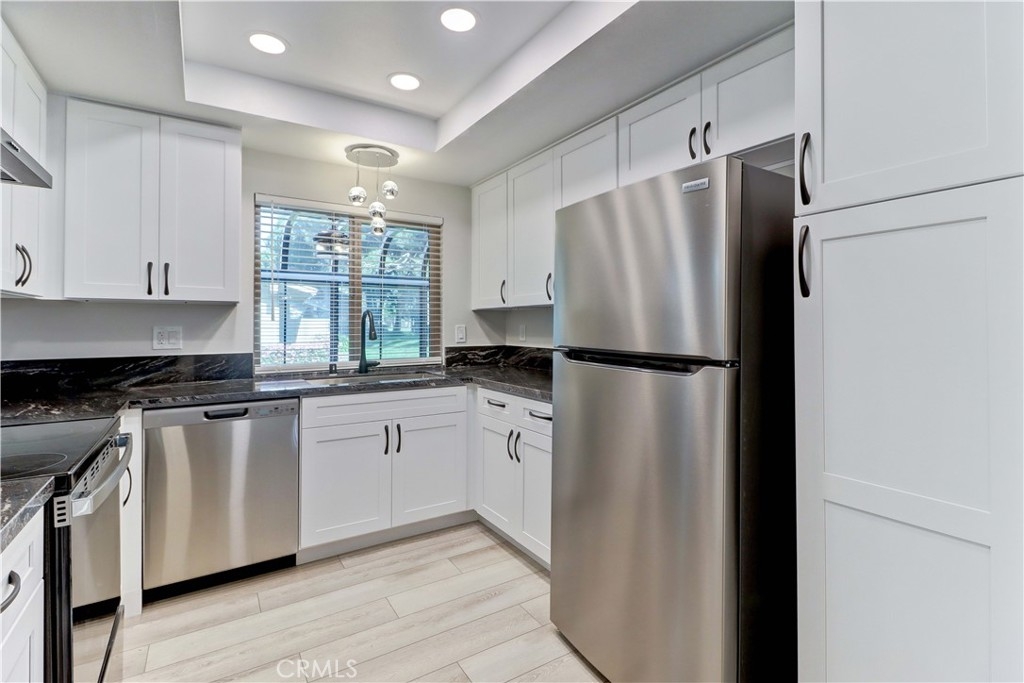 LOCATION! LOCATION! LOCATION! THIS ONE IS A BEAUTY!! ABSOLUTELY STUNNING REMODEL WITH OVER $80K IN UPGRADES!! Very Popular Newport Model-2 Br Ground Floor Condo with a PRIME Location. Located Directly across from the Main Rec Ctr yet it is located off the back of the Bldg Providing Privacy & giving you the Best of Both Worlds. Gorgeous Greenbelt & Tree Views out the Windows of the Solarium Rm, Kitchen and Living Rm. Enjoy the Extra Sq Ft of Living Space with the Added Solarium Rm. The lights on the Solarium Rm convert to Ceiling Fans. Gorgeous Kitchen Remodel with All New White Cabinetry, Tasteful Hardware, Pullouts, Recessed Lighting, Stainless Sink, Modern Gooseneck Faucet, Granite Countertops, Stainless Steel Kitchen Appliances including a GE ceramic top Range with Modern Exhaust Hood and Backsplash. New Luxury Vinyl Plank Flooring & Tall Baseboards Throughout. Scraped Ceilings. Both Baths have been Completely Remodeled including Showers & Exhaust Fans. The Lighting throughout offers Such Elegance. Dual Paned Windows and Sliding Glass Door off the Living Rm. This floorplan features a Huge Walk in Closet in the Primary Br with added shelving to utilize the space. New Blinds Throughout. This is an Opportunity to have a Coveted Ground Floor 2 Br w/o the Single Story Price. Private Laundry closet with included New Washer and Dryer right off the Patio Enclosed w/a Solarium Rm. Condo has been Repiped. Guest Parking, Garage and Mailbox are located Near the Condo. Feels Like Being at a Resort with a Fabulous Recreation Center. 2 Pools, 2 Spas with Main Rec Center Pool being almost Olympic Size! Tennis Courts, Pickelball Courts, Ping Pong, Dances, Trips, Movies, Clubs, Parties, Concerts, Fitness Center, Fitness classes-Water Aerobics, Yoga & Zumba, Woodshop, Chorale, Quilters, Art & Ceramics Clubs & Classes, Billiards, Putting Green, Library & Much More. Well Maintained Grounds with Mature Trees. Hunt Landmark is located close to the Post Office and Grocery Store and Famous Beaches of Huntington Beach. Near the HB Pier, Downtown Area & Pacific City. You are Close to Shopping and Post Office. 24 Hr Guard Gated 55+ Community Near the Ocean (Approx.1.2 Miles)