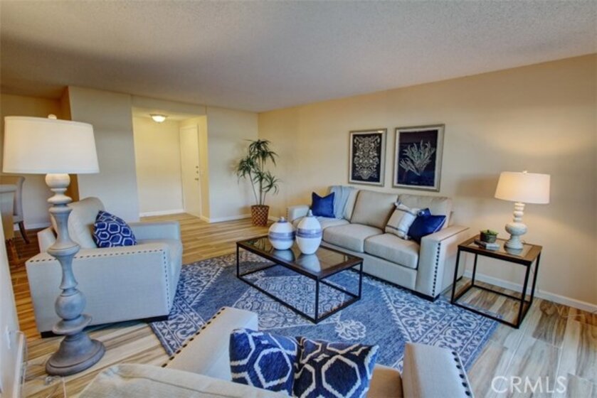 Newly painted and completely remodeled, this highly desired ground floor unit, no steps, is just Beautiful!. Featuring all new dual pane windows and a beautifully remodeled kitchen with cherry cabinets, two corner lazy susans, granite counter tops, stainless steel dishwasher and stove, recessed lighting and beautiful laminate flooring. With lots of natural light you will feel the comforts of home. The spacious inviting dining room features a beautiful ceiling fan and is open to both the kitchen and living room. The new laminate flooring extends throughout and only the bedrooms are carpeted. The master bedroom features a large walk-in closet and a beautifully remodeled bathroom which includes all new faucets, toilet, beautiful cherry vanity cabinet with granite counter tops. The Large patio includes a laundry closet with washer and dryer that stays, gate access that opens and is convenient to your 1 car garage. Landmark's Clubhouse offers activities galore including bingo, art and wood shop classes, a library, billard room, shuffle board, putting green, 2 pools, tennis courts, bocce ball and transportation service. Shopping, the post office, restaurants and the beach are all conveniently located. Don't miss out on this beautiful unit in an excellent location within the community.