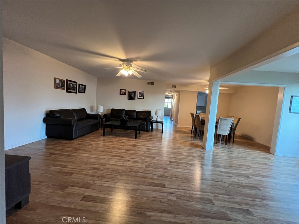Wonderful ground floor condominium in the Huntington Landmark community. This spacious 2 bedroom, 2 bath home includes a detached, single car garage and plenty of parking for both residents and their guests. This model features an enclosed atrium with laundry closet (for full sized washer and dryer), laminate flooring, and spacious living areas. The community offers many amenities, including gated and guarded entry, tennis and pickleball courts, heated pools, gym and weight room, library, and a range of activities for the residents.