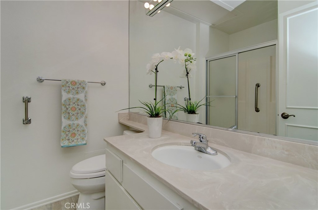 Light and bright Laguna Model in desirable 55+ community of Huntington Landmark just blocks from the beach. Three large bedrooms, updated kitchen, and a spacious private patio are just some of the amenities in this lovely home. Every window has a view of the greenbelt and there is parking conveniently located steps from the front door. Attention to upgrades can be found in the plumbing, heating, carpet, and decor. This home is turn-key -- bring your clothes and move right in! Landmark offers resort-style living with heated swimming pools and spa, clubhouse, gym, tennis courts, library, wood shop, art studios, billiard room, activities, and more.