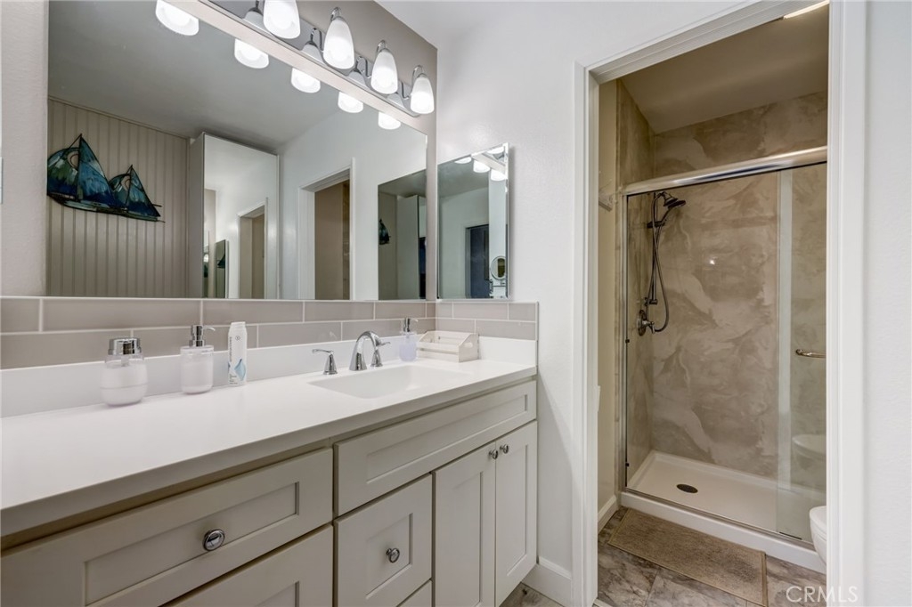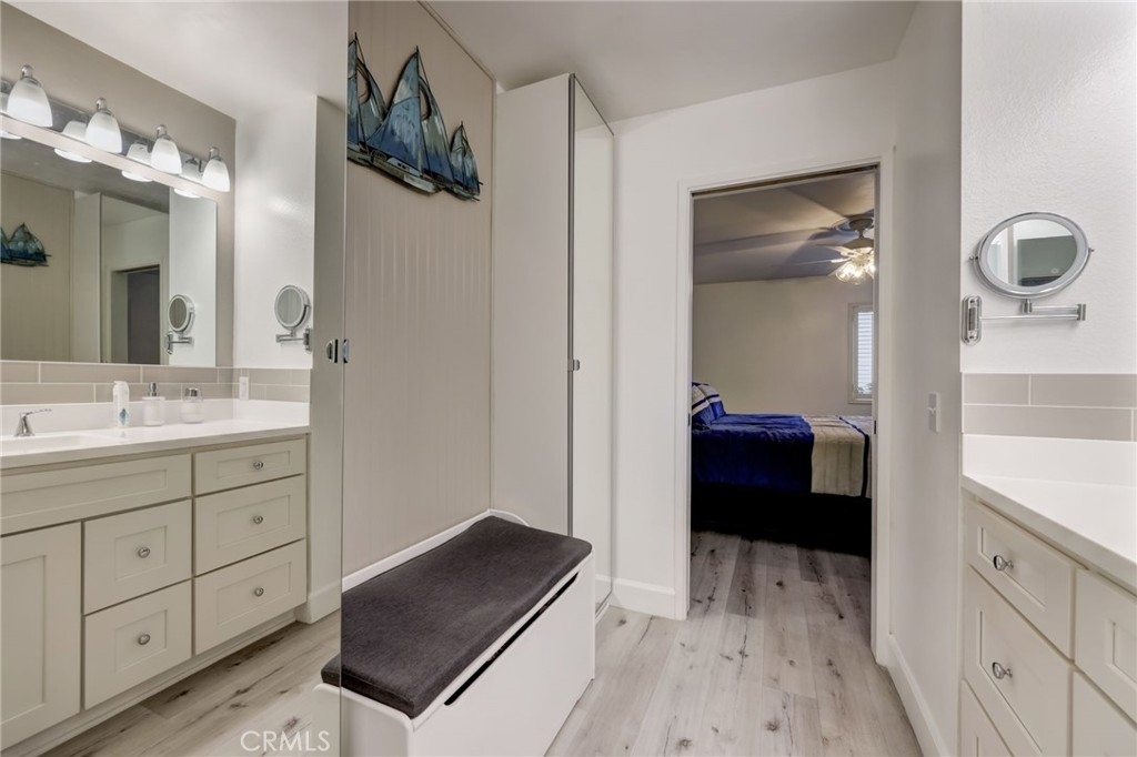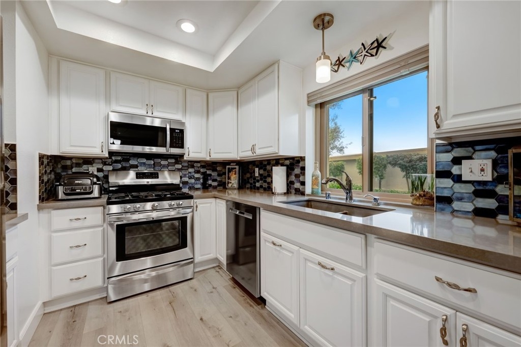 Beautifully remodeled 2-bedroom/2-bathroom ground floor unit in the highly coveted Huntington Landmark active adult 55+ condo community. This private, guard-gated community offers the well landscaped grounds and extensive recreation facilities including two pools, spa, exercise room, putting green, tennis/pickleball courts, and BBQ area. The clubhouse features a billiards room, library, sewing room, woodshop, and various other meeting rooms for Bingo, tea parties and other recreational activities. The interior boasts a large living room looking out to the adjacent patio with beachy décor and new luxury vinyl plank flooring throughout the home. Kitchen has been fully upgraded with white shaker cabinets, quartz counter tops, and stainless-steel appliances (Stove, Dishwasher, Microwave, Refrigerator). Home has fresh paint, central AC and heat, linen closet space, large washer and dryer are included in patio closet, and modern ceiling fans are located in each room.