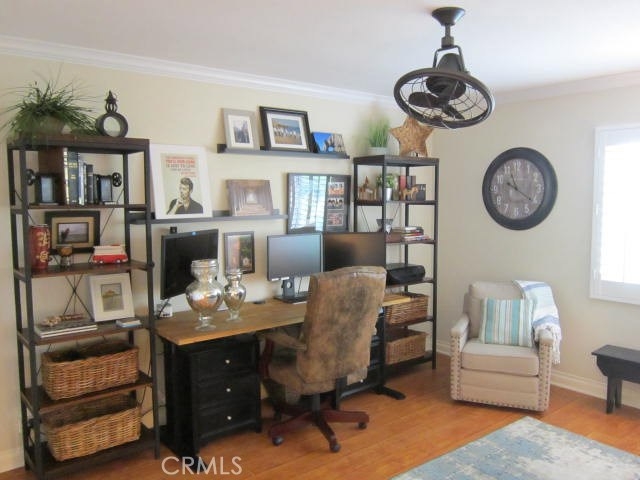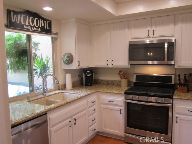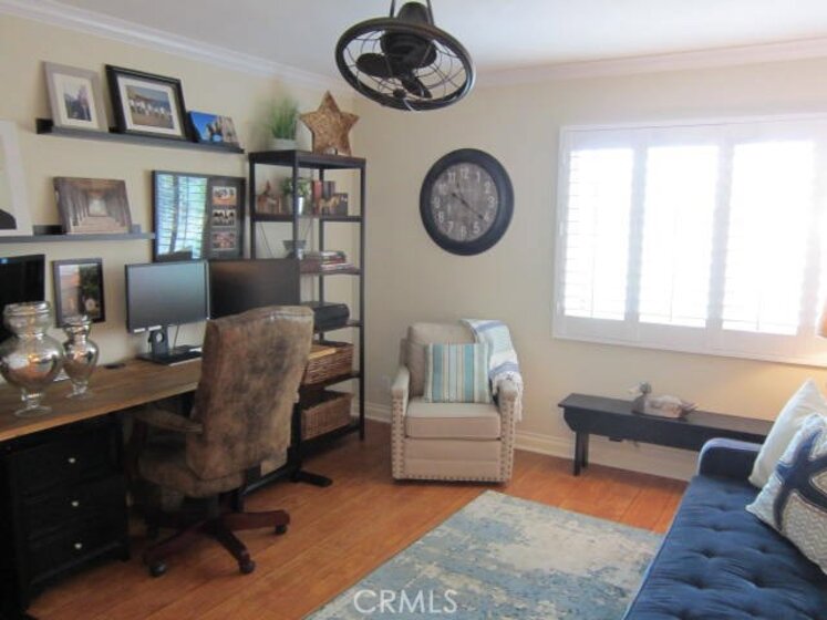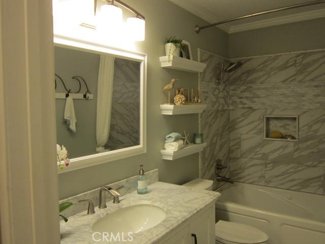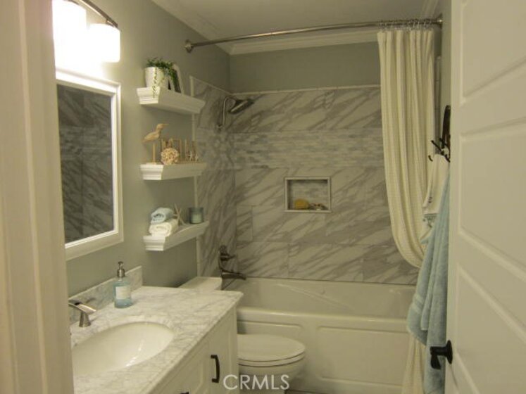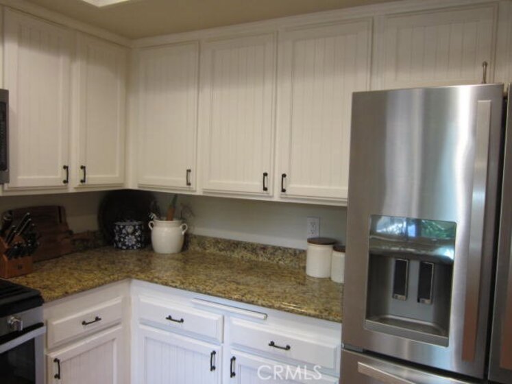 No one above or below with this 2 bedroom 2 bath 1,072 sq ft Marina model. Offers 2 patios, a larger front yard with shade trees along with a nice view of the green belt from the master bedroom and back patio. Remodeled from top to bottom! *New windows with Plantation shutters *Scraped ceilings *Crown molding throughout *Remodeled kitchen with Granite countertops, farm house style cabinets, canned lighting and Stainless appliances. *Remote controlled ceiling fans *Newly tiled bathroom floors *Bathroom Vanity with carrera marble top, and all new fixtures. *Master closet designed by California Closets. * Stacked washer and dryer. * Bar with additional sink. This community offer many amenities such as 2 pools/spas, planned activities, bingo, dances, tennis, golf and much more. Huntington Landmark is a 55 and over community