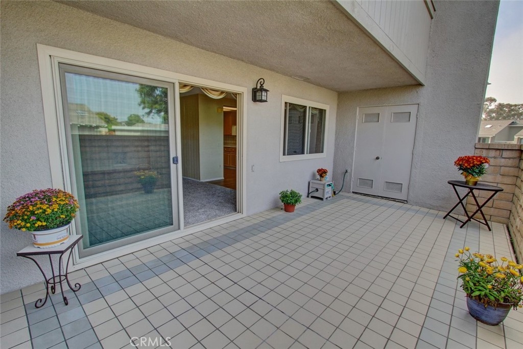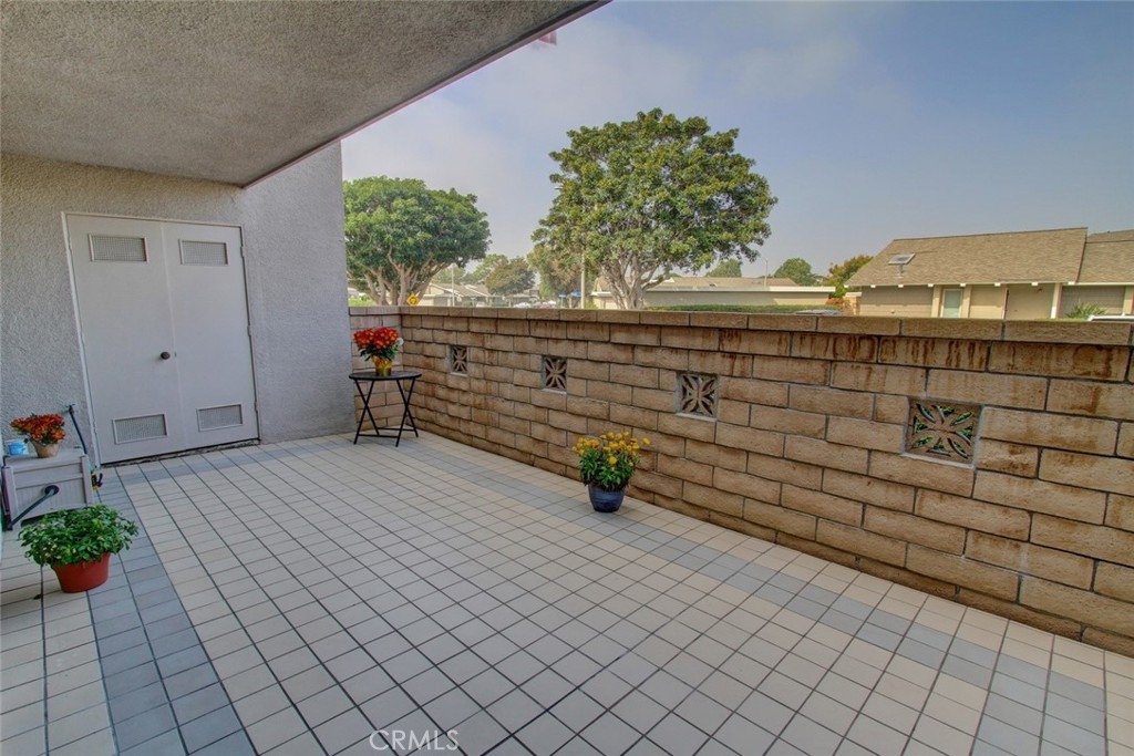 Downstairs 3 bedroom, 2 bath. New carpet, newer cabinets in kitchen, laminated flooring in kitchen and dining room. Double pane windows through out. Slump stone fence around patio. Parking in front of unit. Unit is located in the 55+ community of Huntington Landmark. Less than 2 miles to beach, so you have the nice ocean breezes. Close to grocery stores, Post office, and banks. Some amenities of the community include: gym, billiard room, library, tennis and pickleball courts, 2 pools, wood shop, and ceramic room. Activities include: bingo, dinner dances, movies, pool parties, and concerts on the green during the Summer.