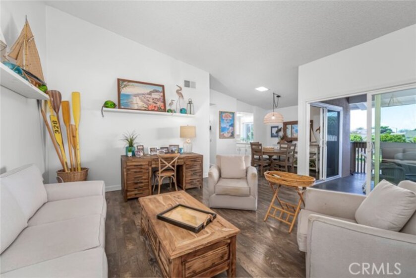 SERIOUSLY!….Do not make an offer on another home until you’ve toured this one first!!! True pride of ownership does not begin to describe this DREAM of a home! Located in the highly coveted guard gated 55+ Community of Huntington Landmark. This bright and open end-unit Pacifica floorplan which shares only one common wall, has an OVERSIZED outdoor balcony accessed by two sliding doors which gives this home a beachy indoor-outdoor living feel. The home features newer double paned windows and sliding doors, newer vinyl wood flooring, newer refrigerator, newer dishwasher, newer washer and dryer, newer furnace, and newer water heater. The natural light that bathes this home will uplift anyone’s spirit who walks through the front door. Upon arrival, the outdoor landing is adorned with an array of meticulously curated plants and flowers. Once inside, the cathedral ceilings with skylight just adds to the voluminous feeling of space and freedom this home exudes! The well-appointed kitchen with stainless steel appliances has a window in front of the sink allowing you to look out onto the lush green open spaces and blue skies. The quiet interior location of this condo is situated far from neighboring buildings which affords you an immense sense of privacy! This condo also comes with a private garage with newer aluminum roll up door and remote, which is located right next to the building. Also, there is an ABUNDANCE of additional open parking spaces situated all around the building. If this ALL isn’t enough…the condo comes turnkey furnished (per inventory)! Most importantly, you will be surrounded by friendly neighbors that truly care and look out for each another! Please come and tour this home today and make the DREAM YOUR REALITY!