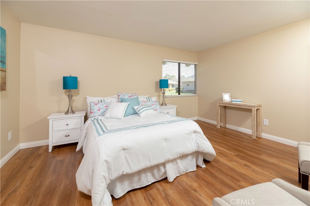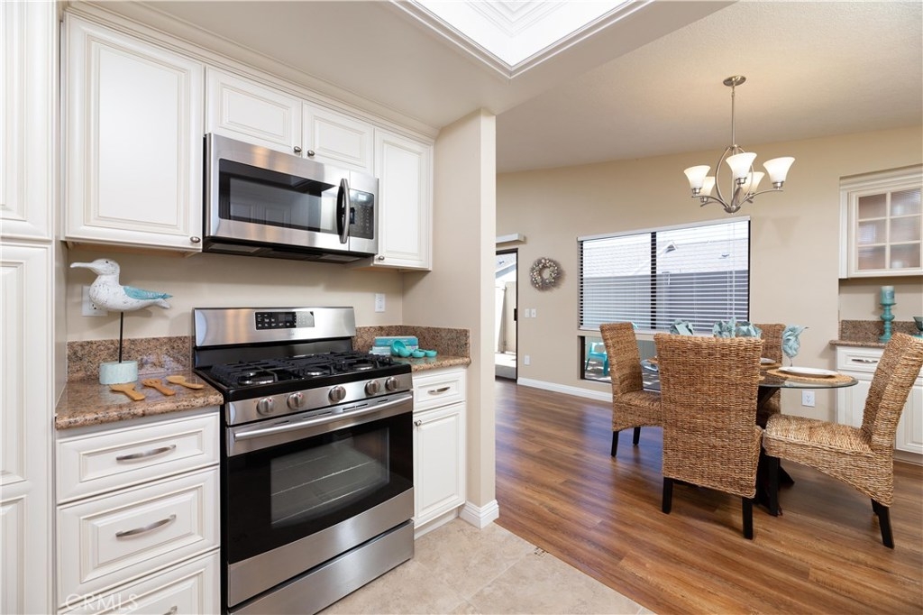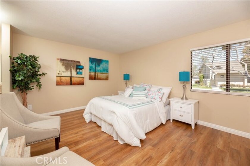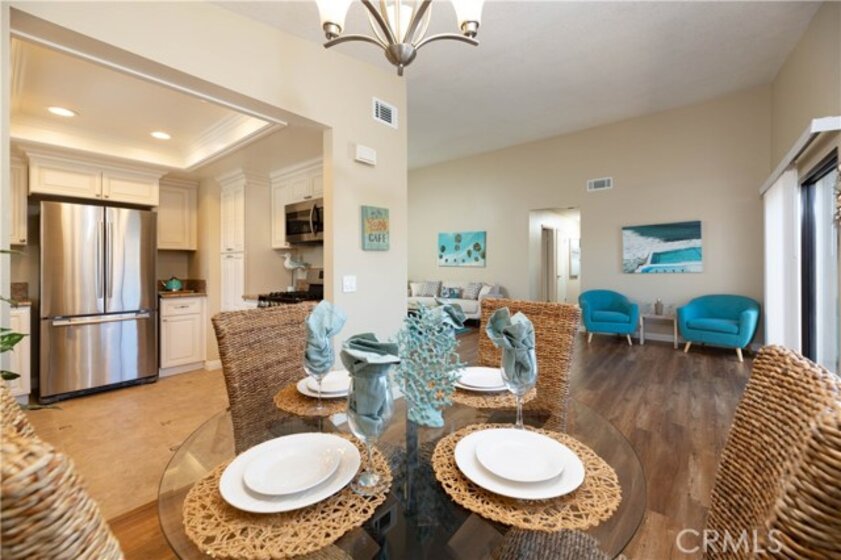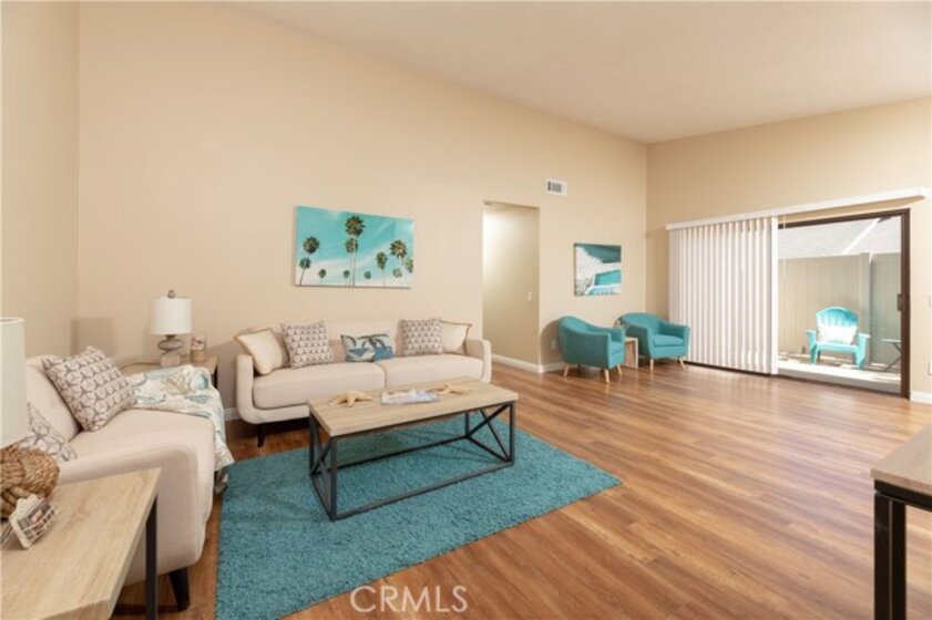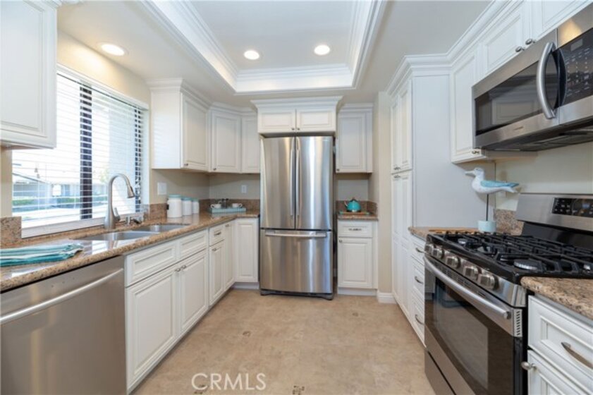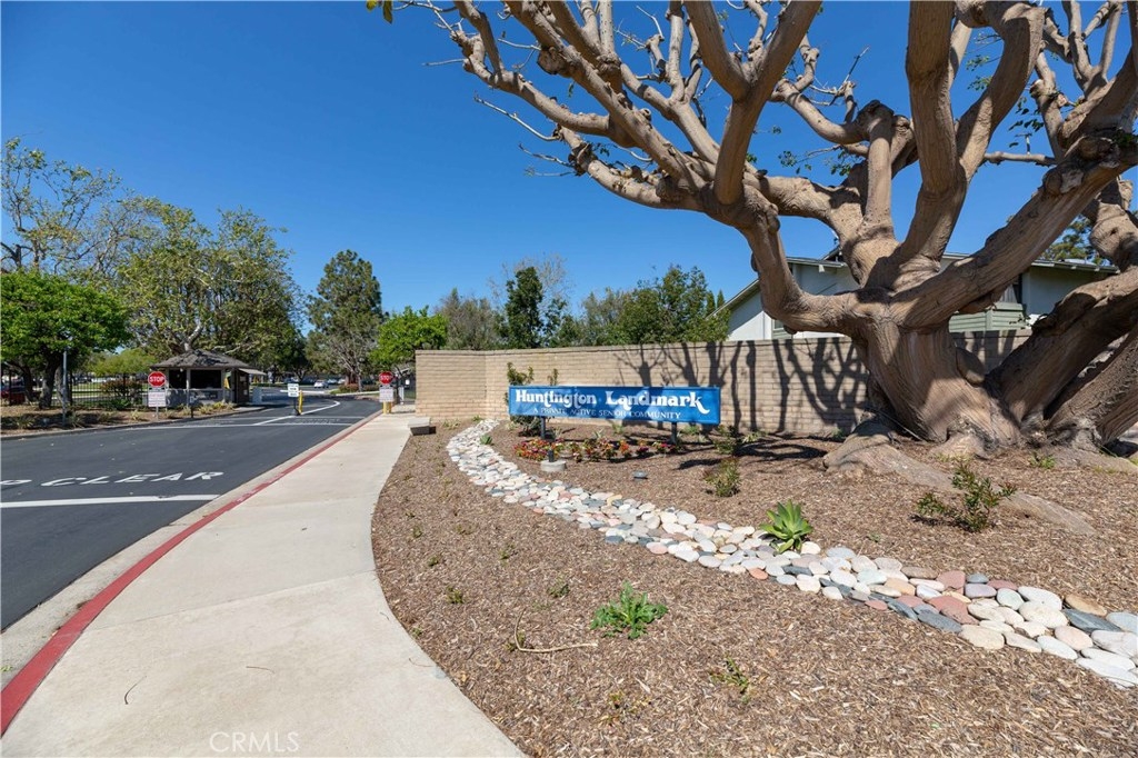 Highly upgraded end unit in Huntington Landmark community. Completely remodeled 3 bedroom 2 bath Laguna Model in a great location. Move in ready with newer flooring throughout, clean paint, smooth ceilings, and natural light. Kitchen features high end stainless steel appliances, granite counters, beautiful mouldings, recessed lighting, and white cabinetry. Both bathrooms have been beautifully remodeled with granite counters, designer tile, lighting, and white cabinetry. Large master bedroom has walk-in closet and master bath with double vanity. Additional bedrooms have ample space for guests, offices, or craft rooms. Living and dining rooms open to large private patio. 55 plus community features a guard gate, pools, spas, putting green, sports courts, gym, activities, socials, and so much more!