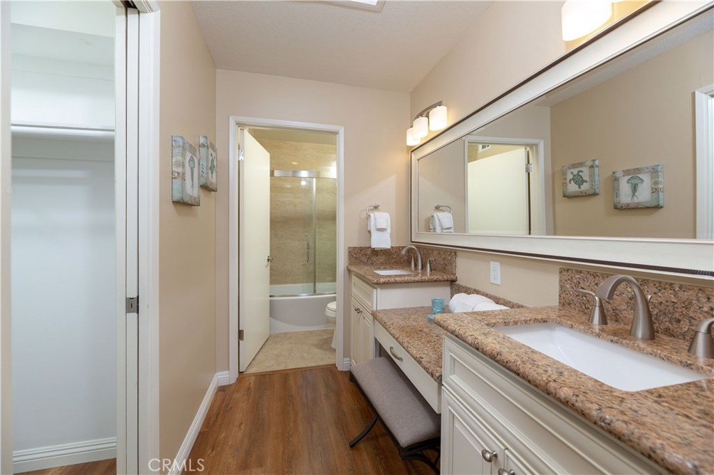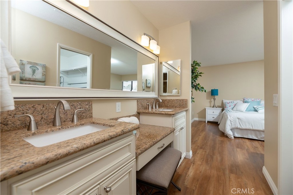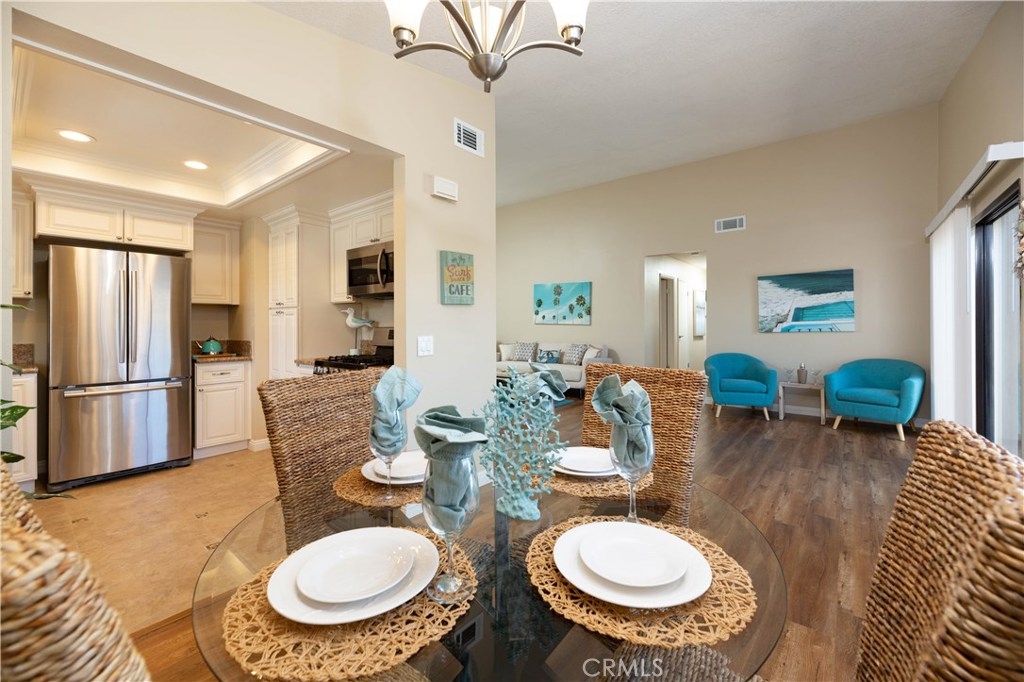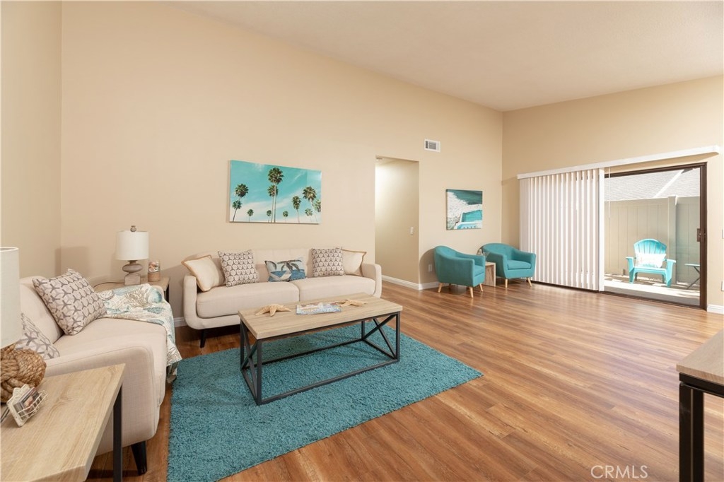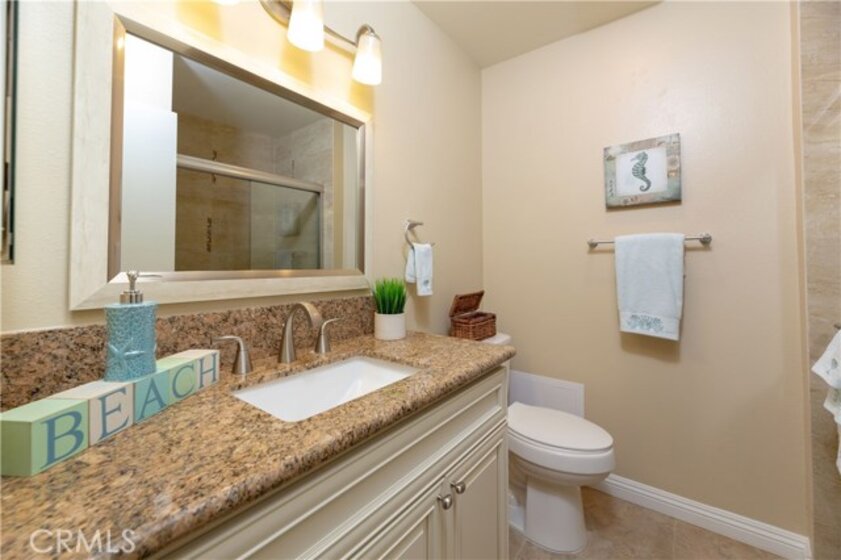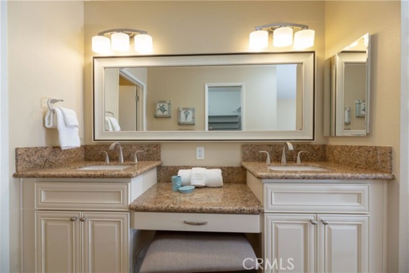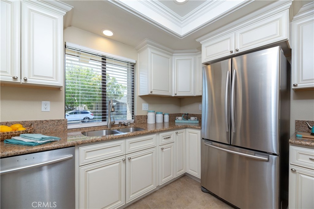 Highly upgraded end unit in Huntington Landmark community. Completely remodeled 3 bedroom 2 bath Laguna Model in a great location. Move in ready with newer flooring throughout, clean paint, smooth ceilings, and natural light. Kitchen features high end stainless steel appliances, granite counters, beautiful mouldings, recessed lighting, and white cabinetry. Both bathrooms have been beautifully remodeled with granite counters, designer tile, lighting, and white cabinetry. Large master bedroom has walk-in closet and master bath with double vanity. Additional bedrooms have ample space for guests, offices, or craft rooms. Living and dining rooms open to large private patio. 55 plus community features a guard gate, pools, spas, putting green, sports courts, gym, activities, socials, and so much more!
