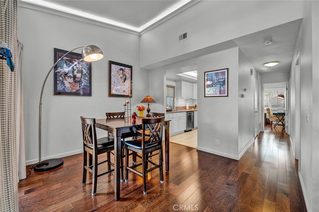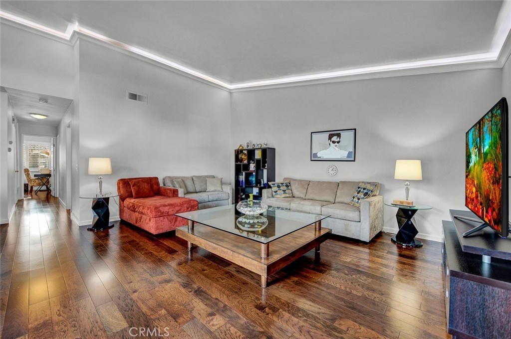 Beautiful 2 bed/2 bath Pacifica Model in the Huntington Landmark 55+ community. This lovely end unit was remodeled in 2016: New wood flooring, remodeled kitchen, new appliances, remodeled baths, double pane windows and sliders, wood shutters in the bedrooms and custom lighting in the kitchen and living room. There is a one-car garage and plenty of guest parking in front and around the unit. The community offers many activities that residents may choose to get involved. Huntington Landmark is less than 2 miles from the beach and features resort-style amenities including 2 pools, tennis, pickleball, putting green, gym, clubhouse, woodshop, ceramics room & acres of greenbelts & walking paths. An abundance of shopping, dining, and entertainment options surround this community.
