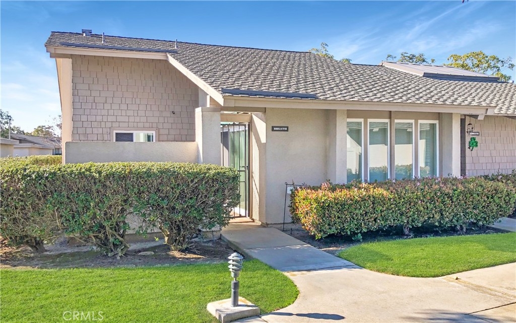 This single-story END UNIT Marina model features A/C, STAINLESS STEEL APPLIANCES, DUAL PANE WINDOWS, SCRAPED CEILINGS & NO STEPS TO THE FRONT DOOR! PLENTY OF PARKING RIGHT NEXT TO THE HOME. Upon entering through your own private courtyard, you are greeted with a spacious open floor plan and vaulted ceilings. The kitchen is well appointed with stainless steel appliances and lots of counter space. Gorgeous low maintenance wood-look vinyl was recently installed throughout the home. Indoor washer & dryer. 2 beautiful large flagstone patios allow you to enjoy the outdoors. One car garage. Huntington Landmark features resort style amenities including 2 pools, tennis, pickleball, putting green, gym, clubhouse, wood shop and ceramics room. An abundance of shopping, dining and entertainment options surround this community. Located in a private gated community less than 2 miles to the beach. Come live your best life in the Huntington Landmark 55+ neighborhood of Huntington Beach!