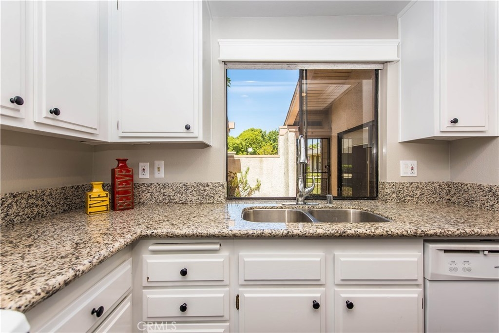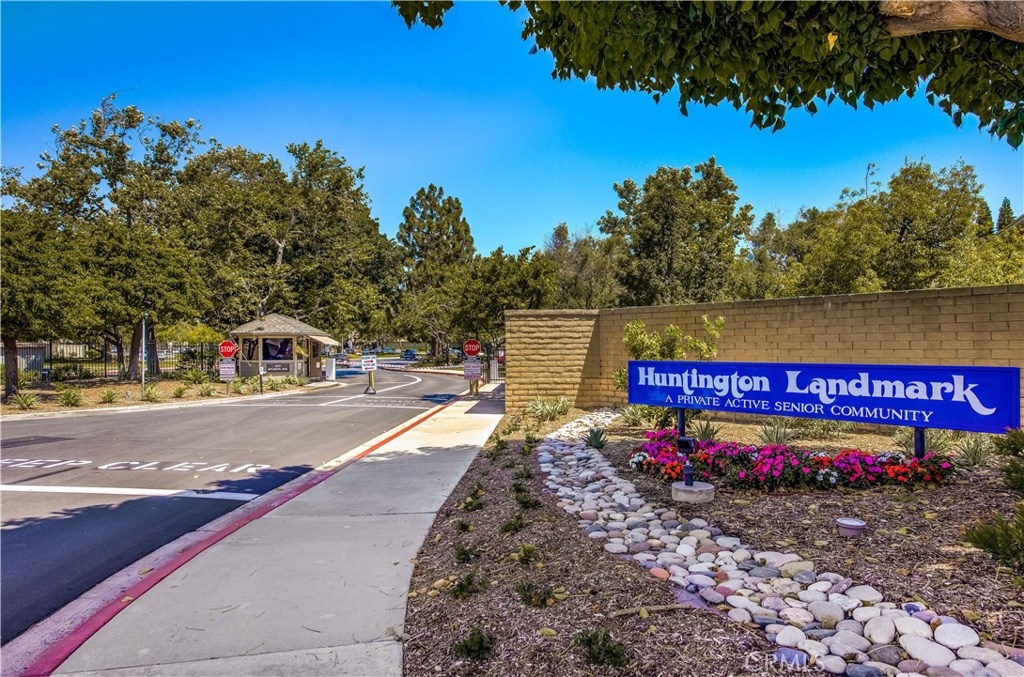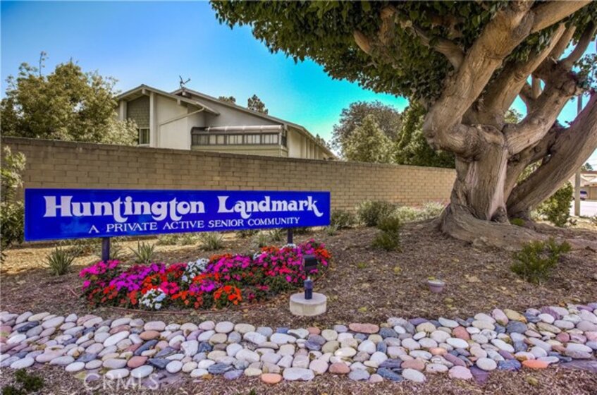 Welcome to this beautifully renovated Marina model condo with an amazing view in the sought after gated 55+ community of Huntington Landmark. This bright open floor plan offers 2 bedrooms, 2 bathrooms and over 1,072 square feet of designer finishes and comfortable living space. This single-story unit is “move-in” ready with vaulted ceilings, new laminate flooring and fresh designer paint, recessed lighting, updated copper plumbing and comes with a 1 car garage. While the kitchen offers granite countertops and quality appliances making it the perfect place to prepare all your meals with ample cabinet space and view of your front patio. Your own private front patio also has motorized shade cover. The master suite offers a walk-in closet with updated vanity and granite countertops. Sliding glass door allows access to the spacious outdoor patio, the perfect accent to this beautiful home. All of this with resort style living with lots of amenities including 2 heated swimming pools and spa, tennis courts, putting green, shuffleboard, gym and weight room, club house, ceramic room, wood shop, library, billiard room and so much more. Don’t miss out!