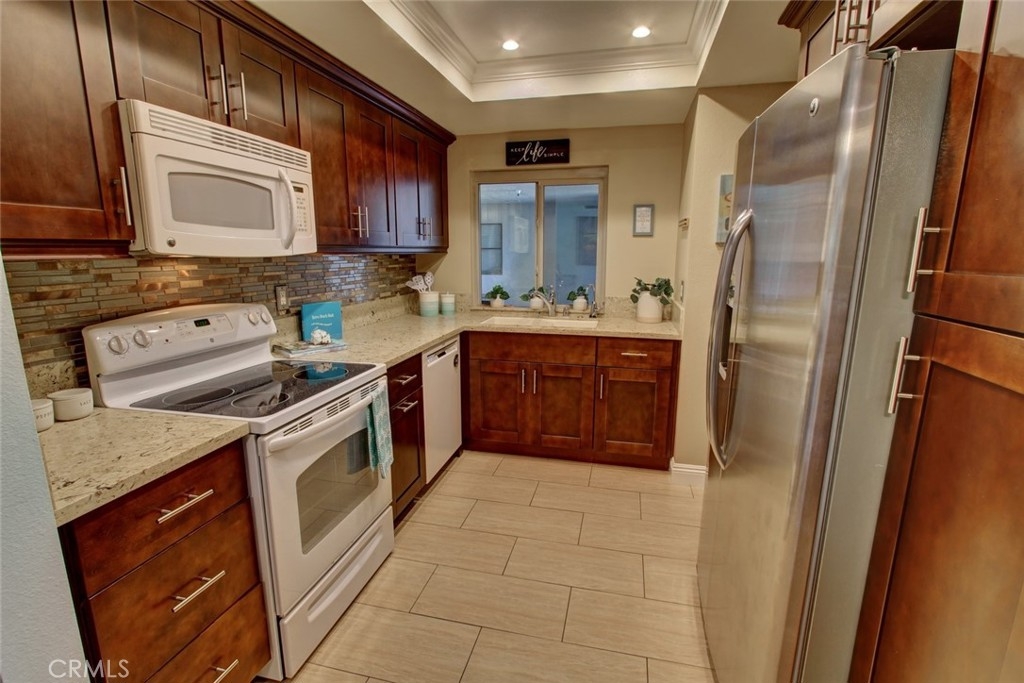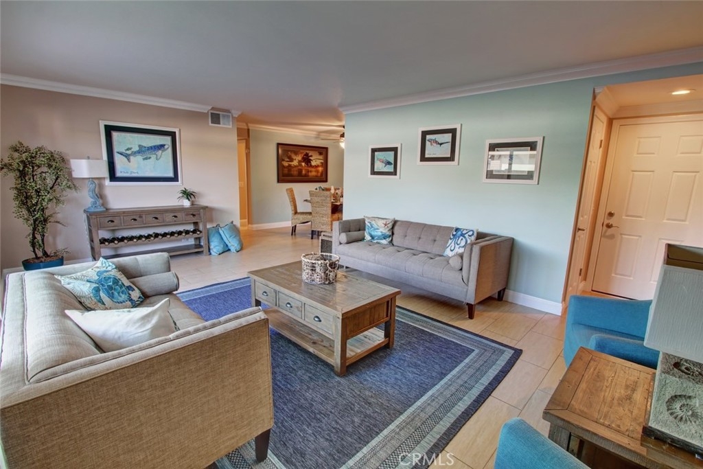 Must see this beautiful, upgraded lower unit. Recessed lighting in kitchen, newer cabinets and counter tops. Ceiling fans in dining room and both bedrooms. Dual pane windows throughout. Bathrooms have been upgraded. Unit is located in the 55+ community of Huntington Landmark. Less than 2 miles to beach, so you have the nice ocean breezes. Close to grocery stores, Post office, and banks. Some amenities of the community include: gym, billiard room, library, tennis and pickleball courts, 2 pools, wood shop, and ceramic room. Activities include: bingo, dinner dances, movies, pool parties, and concerts on the green during the Summer.