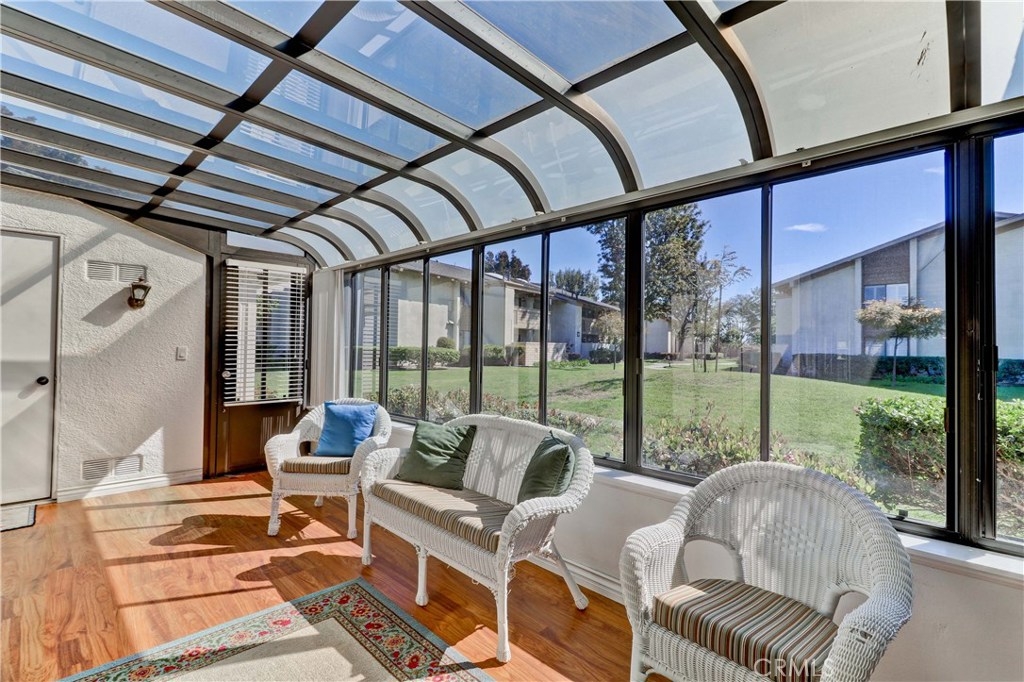 ***VERY POPULAR 1 BR SINGLE STORY 'DUNES' MODEL WITH AN ADDED SOLARIUM-EXTRAORDINARY GREENBELT VIEWS OUT OF THE SOLARIUM RM AND LIVING RM***FANTASTIC LOCATION. GUEST PARKING IN FRONT OF CONDO. SCRAPED CEILINGS THROUGHOUT. VERY LIGHT AND BRIGHT BATHROOM WITH AN ADDED WINDOW AND SKYLIGHT IN BATH. NEW PANASONIC EXHAUST FAN AND HEAT COMBO IN BATH. BOTH THE BATH AND BEDROOM ENJOY A MOSTLY WESTERLY FACING EXPOSURE-GREAT FOR AFTERNOON LIGHT! GARDEN WINDOW IN DINING AREA. LAMINATE WOOD FLOORING IN SOLARIUM ROOM. NEW GARAGE DOOR OPENER. TILED FLOORING AT ENTRY, IN BATHROOM AND KITCHEN. 24 HR GUARD GATED 55+ COMMUNITY NEAR THE OCEAN. AMENITIES INCLUDE 2 SWIMMING POOLS (ONE NEARLY OLYMPIC SIZE) AND 2 SPAS, TENNIS, BILLIARDS, FITNESS CENTER, WOOD WORK SHOP, ART, CERAMICS AND FITNESS CLASSES, TRIPS, CLUBS, DANCES AND BINGO & SO MUCH MORE!