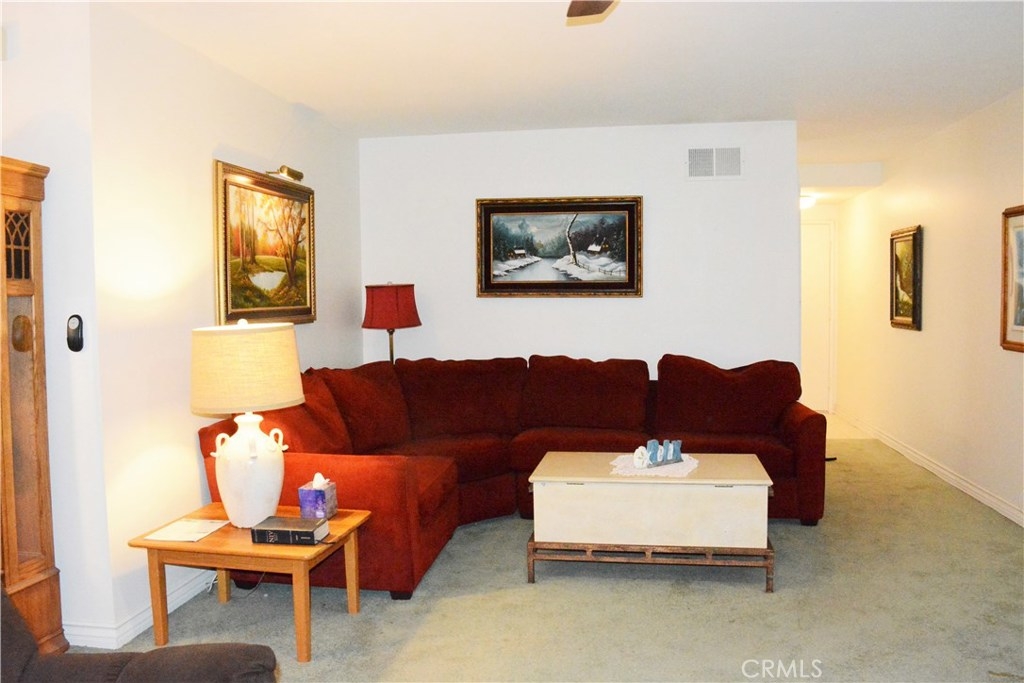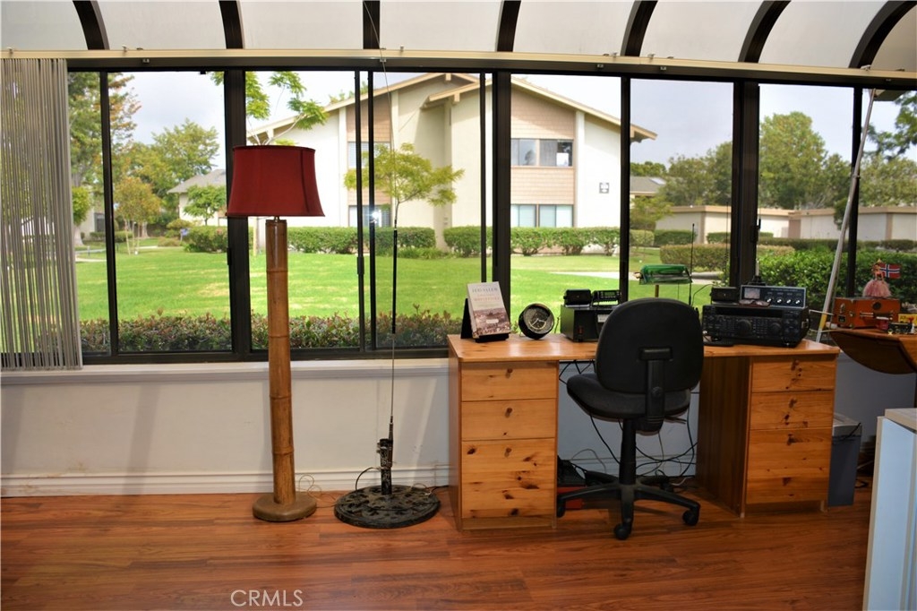Reduced! Greenbelt View! There is nobody above or below! This home is the very popular large 1 bedroom plan with an enclosed Solarium! The Solarium is perfect for a den or office and makes it feel like a two bedroom! It overlooks a huge, gorgeous greenbelt in the back and there is direct access to the grassy area from the Solarium. People love this home also because it has tons of parking directly in front for easy access and there are no stairs! This home is also in a fantastic location since it is just off the main street and it is still close to the clubhouse! It shows light and bright, it has a new forced air unit, a new water heater, new ceiling fan, plus newer paint and scraped ceilings! It has washer/dryer hookups and a one car garage! The Popular Huntington Landmark Community (over 55 yrs) is close to the sandy beach, shopping, restaurants, and it has 24-hour guard-gated service, RV parking, 2 swimming pools, 2 spas, tennis courts, shuffleboard, clubs galore, a fitness center, billiards, a wood shop, art, ceramics and much, much more! Agent is related to the seller.
