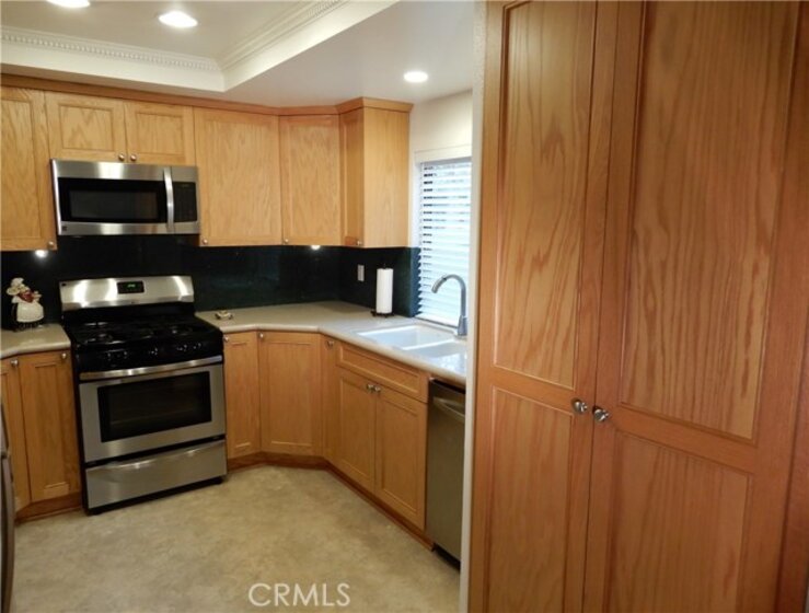 Beautiful 2 bedroom, 2 bath, condo in desirable Huntington Beach Landmark Senior Community. End unit with front and back enclosed patios. Kitchen with light wood cabinets and stainless steel appliances. Built-in buffet with mirrored back splash in dining room. Travertine flooring in master bath. Walk-in closet in Master Bedroom. Updated Carpet, Paint, Vinyl Flooring & Appliances.