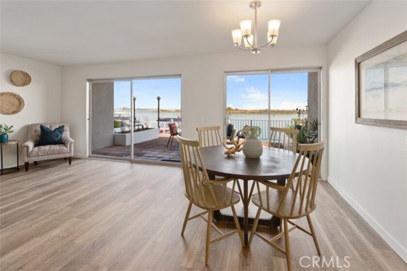 If you are looking for a first floor unit with no steps, panoramic views of the harbor and a private dock with a boat slip that can accommodate up to a 35' vessel, this may be the property for you! Freshly painted walls, ceilings, doors and moulding and brand new luxury vinyl that looks just like wood but is waterproof and great for coastal properties. Fantastic floorplan with gorgeous harbor views from the kitchen and living room. Small patio off master bedroom which is fabulous for pet owners! Great location for watersports, fishing, boating and biking. Walking distance to Sunset Beach and Peter's Landing. Centrally located to everything you could want in a beach community. This unit includes a one-car garage, driveway and private carport in a gated complex. If you close escrow soon, you can enjoy the Holiday Boat Parade right from your living room or back deck!