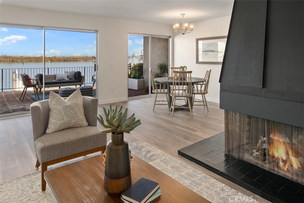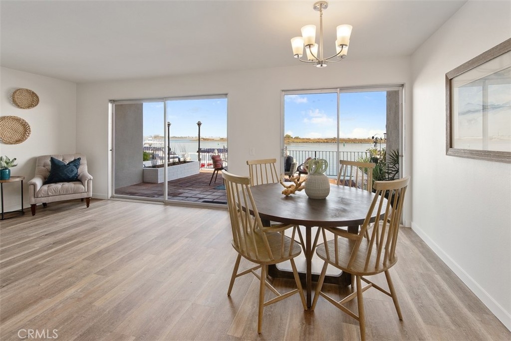 If you are looking for a first floor unit with no steps, panoramic views of the harbor and a private dock with a boat slip that can accommodate up to a 35' vessel, this may be the property for you! Freshly painted walls, ceilings, doors and moulding and brand new luxury vinyl that looks just like wood but is waterproof and great for coastal properties. Fantastic floorplan with gorgeous harbor views from the kitchen and living room. Small patio off master bedroom which is fabulous for pet owners! Great location for watersports, fishing, boating and biking. Walking distance to Sunset Beach and Peter's Landing. Centrally located to everything you could want in a beach community. This unit includes a one-car garage, driveway and private carport in a gated complex. If you close escrow soon, you can enjoy the Holiday Boat Parade right from your living room or back deck!
