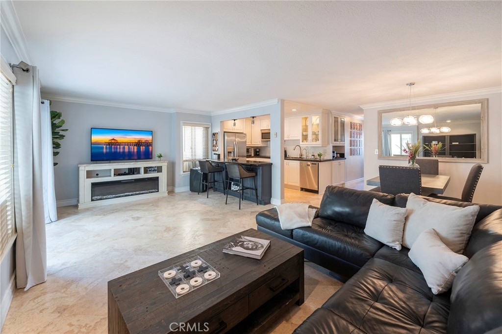 LIVE ON THE SAND IN HUNTINGTON BEACH! Walk to Pier and Main Street. SINGLE STORY CONDO Oceanfront location. MOVE IN READY! Come enjoy Resort Living All Year Round! This is a RARE opportunity to own a home, in this Unique Secured Complex that is located right on the beach. Walk out your door and have easy Direct Gated Access to the Iconic Surf City Coastline, along with Private Fire Pit, Bike Path, Pier, and Exciting Main Street Action. As you enter inside this Newly Remodeled Unit, be greeted with an Open Floor Plan, great for family gatherings, and entertaining. Travertine floors flow seamlessly throughout the home, and the Open Kitchen is inviting with white cabinetry, granite countertops, stainless appliances, and an island that offers bar seating, for casual dining. Both Upgraded Bathrooms feature white cabinets, granite counter tops, and stone showers. This unit boasts Heated Ceilings, fresh paint, crown moulding, recessed lighting, and a Stackable Washer/Dryer, for convenience. The bedrooms are good sized and the primary bedroom has a walk in closet, for extra organization. The exterior boasts an Expansive Patio with Whitewater Ocean Views, it is a great place to sit and watch the surfers, sunsets, fireworks, and the famous HB Air Show. This Guard Gated Community includes Subterranean Secured Parking Garage. Two parking spaces are assigned complete with an additional storage locker. Take advantage of Year Round Resort Living with the Sparkling Pool, Spa, Gym, and Clubhouse. Walk to the famous Huntington Beach Main Street and Pacific City for renowned Dining, Shopping, and Entertainment, and close proximity to the other Orange County coastal towns. Come live the Surf City lifestyle and all it has to offer. This METICULOUS UNIT has been very well maintained and CAN BE SOLD w/ FURNISHINGS to be MOVE IN READY!