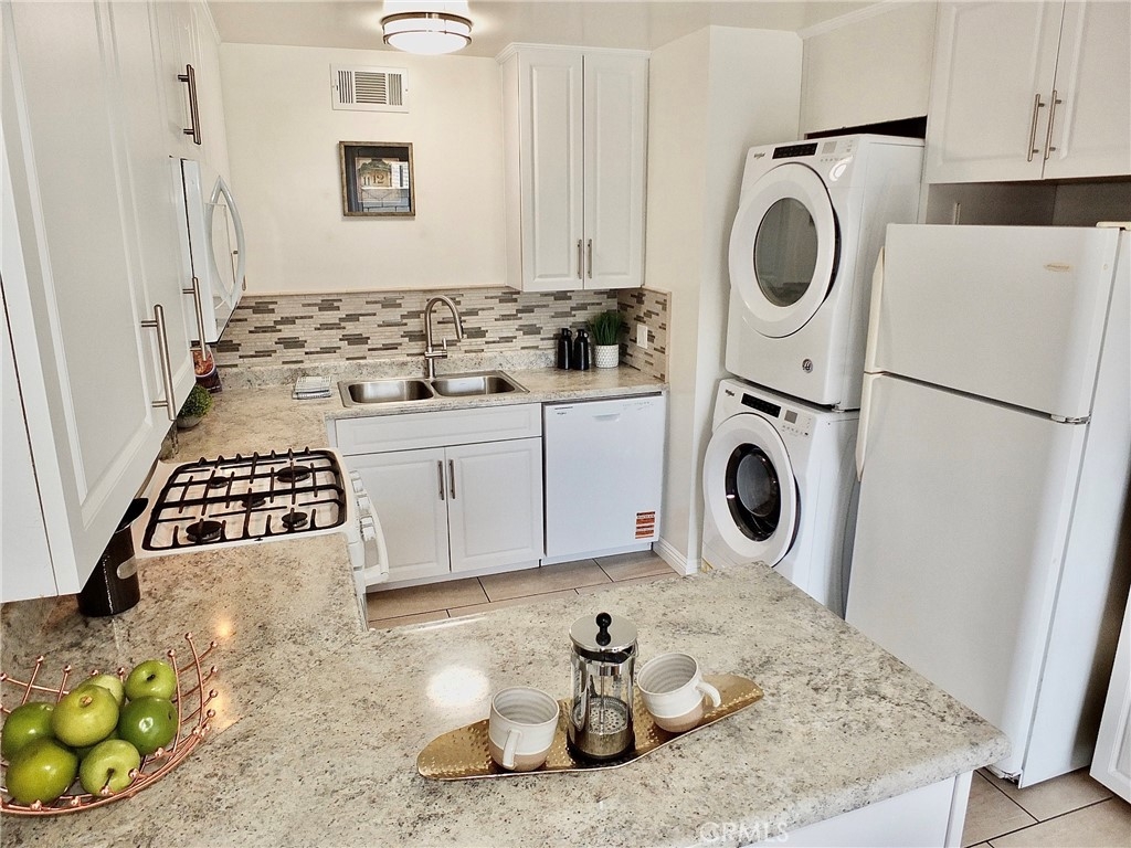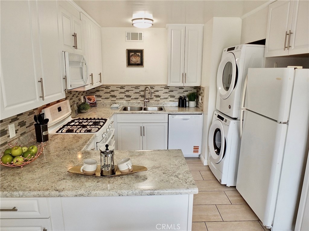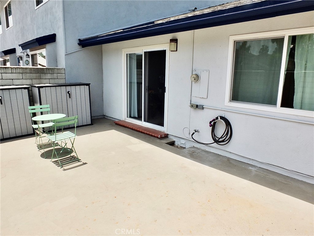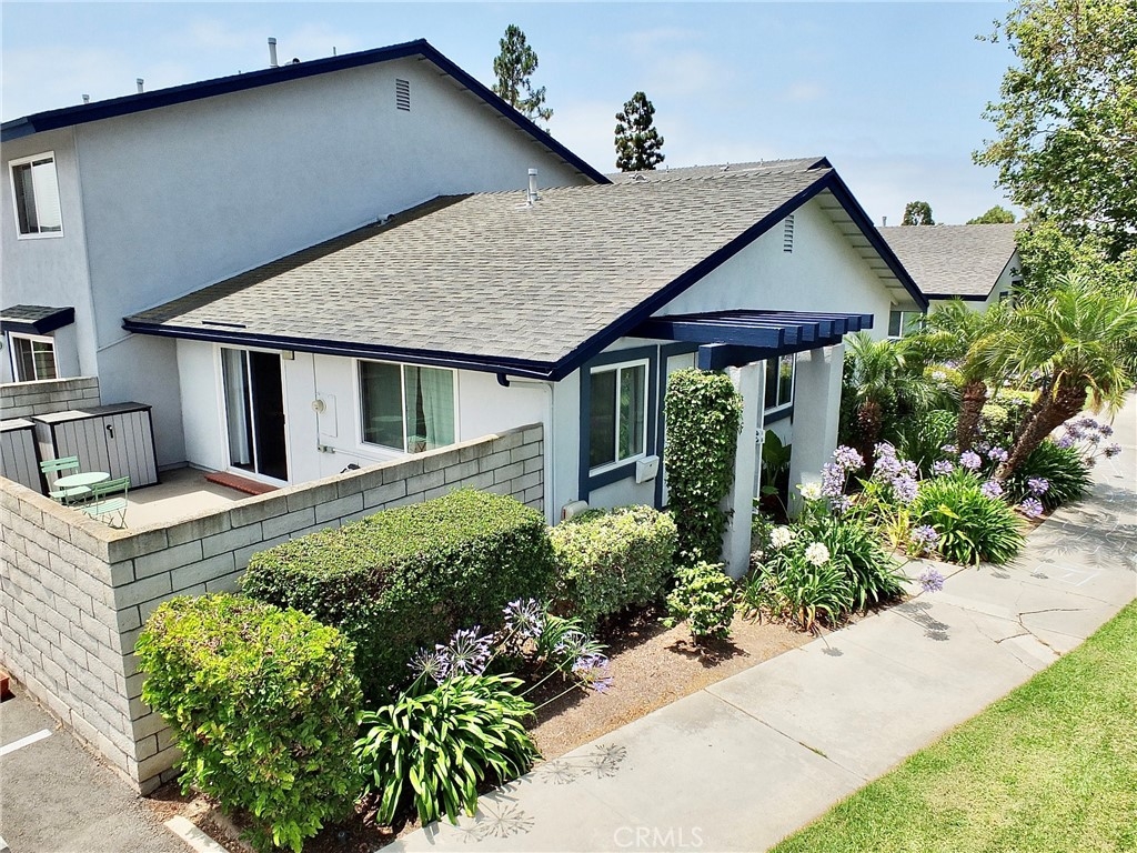 Unbelievable Single Level Condo with 3 bedrooms and Oversized Patio plus the most convenient parking ever. Enjoy laid-back coastal living in this rare, off-street home tucked away in a quiet, beautifully landscaped complex. This end unit features a large patio, privacy and unbeatable convenience. Enjoy open-concept living and dining area with direct patio access ideal for entertaining or enjoying the gentle ocean breezes. Bright wraparound kitchen features tile floors, stainless steel sink, new dishwasher and stackable washer and dryer plus lots of cabinets. Both bathrooms are upgraded and have granite countertops. Ceiling fans in all rooms and a large sliding glass door for ample light. Dual pane windows, newer water heater, faucets and exterior paint. Large attic space with lighting and pull-down staircase for convenient storage. Community amenities include a luxurious resort-style pool, tranquil walking paths, close proximity to the beach, Huntington Harbor, playgrounds, parks, and Bolsa Chica Wetlands. Nearby shopping and dining is just around the corner. Low HOA dues covers pool, professional landscaping, plus water and trash services. Move-in ready and just in time for summer!