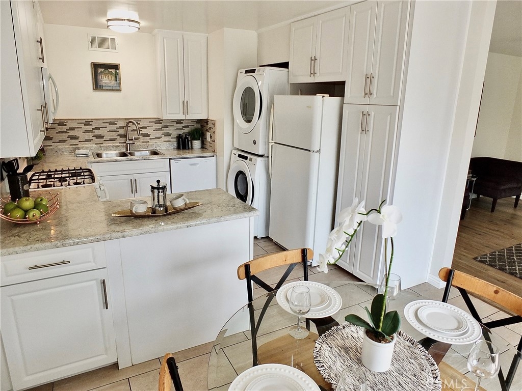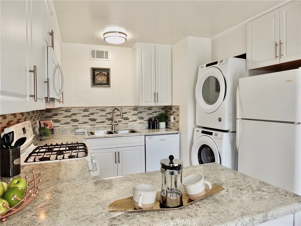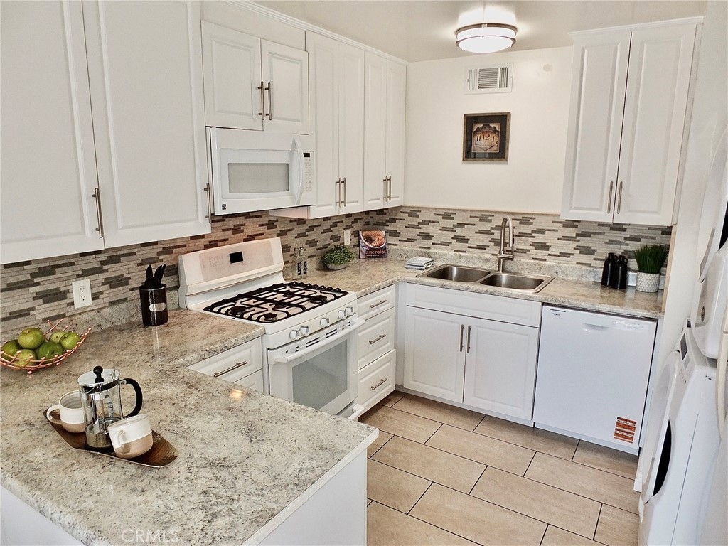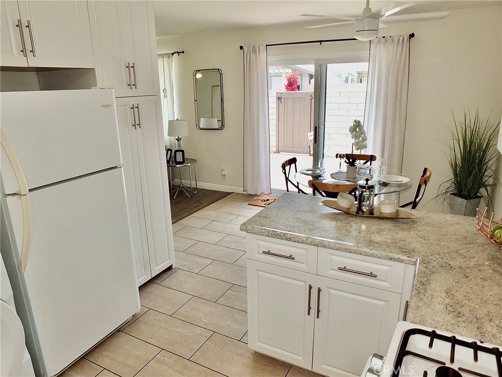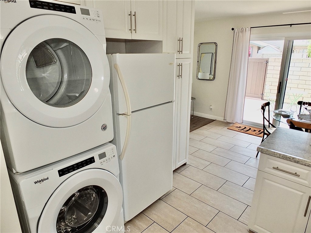 Unbelievable Single Level Condo with 3 bedrooms and Oversized Patio plus the most convenient parking ever. Enjoy laid-back coastal living in this rare, off-street home tucked away in a quiet, beautifully landscaped complex. This end unit features a large patio, privacy and unbeatable convenience. Enjoy open-concept living and dining area with direct patio access ideal for entertaining or enjoying the gentle ocean breezes. Bright wraparound kitchen features tile floors, stainless steel sink, new dishwasher and stackable washer and dryer plus lots of cabinets. Both bathrooms are upgraded and have granite countertops. Ceiling fans in all rooms and a large sliding glass door for ample light. Dual pane windows, newer water heater, faucets and exterior paint. Large attic space with lighting and pull-down staircase for convenient storage. Community amenities include a luxurious resort-style pool, tranquil walking paths, close proximity to the beach, Huntington Harbor, playgrounds, parks, and Bolsa Chica Wetlands. Nearby shopping and dining is just around the corner. Low HOA dues covers pool, professional landscaping, plus water and trash services. Move-in ready and just in time for summer!