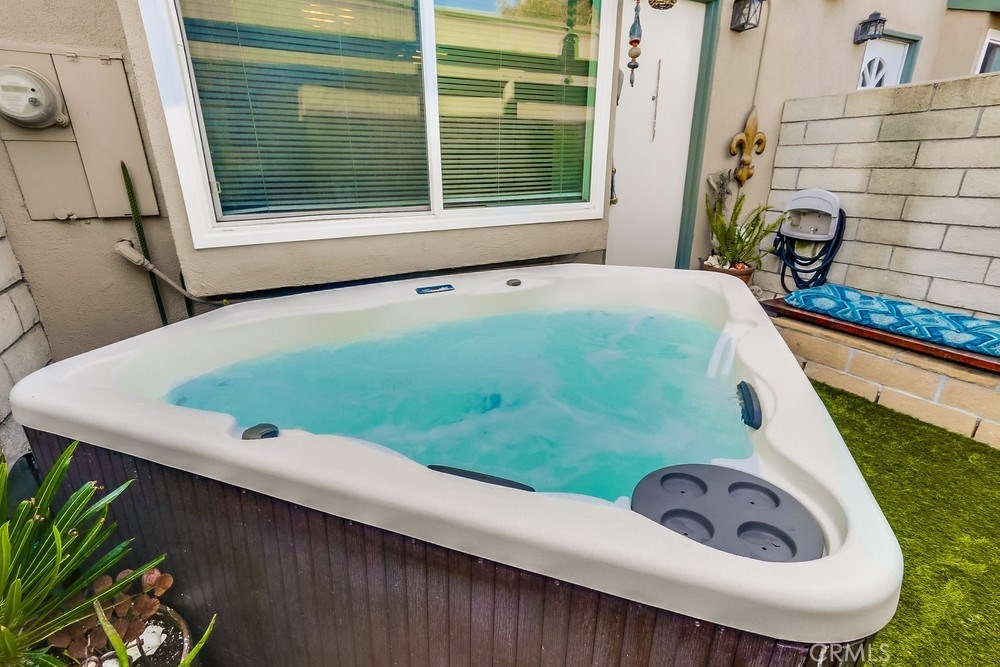 This Huntington Beach townhome is located on a quiet street in Huntington Harbor minutes from the beach, with over 1,100 square feet of living area! Downstairs features a living room with fresh carpet, lots of natural light and a huge storage area. The kitchen includes granite counters, tile flooring, stainless steel appliances, side by side washer dryer, and an eating area with ceiling fan and a view of your private patio and spa. Upstairs are two large bedrooms with wood floors, ceiling fans, a portable A/C unit, large closets and fresh paint. There are 1 1/2 baths (1 full bath upstairs and half bath downstairs), both beautifully designed with Carrara marble in the full bath upstairs, tile flooring and fresh paint in both. Outside the private patio has a spa and direct access to your covered parking and storage in the carport. The HOA is pet friendly and includes a pool surrounded by a large grass area for sunning or picnics.