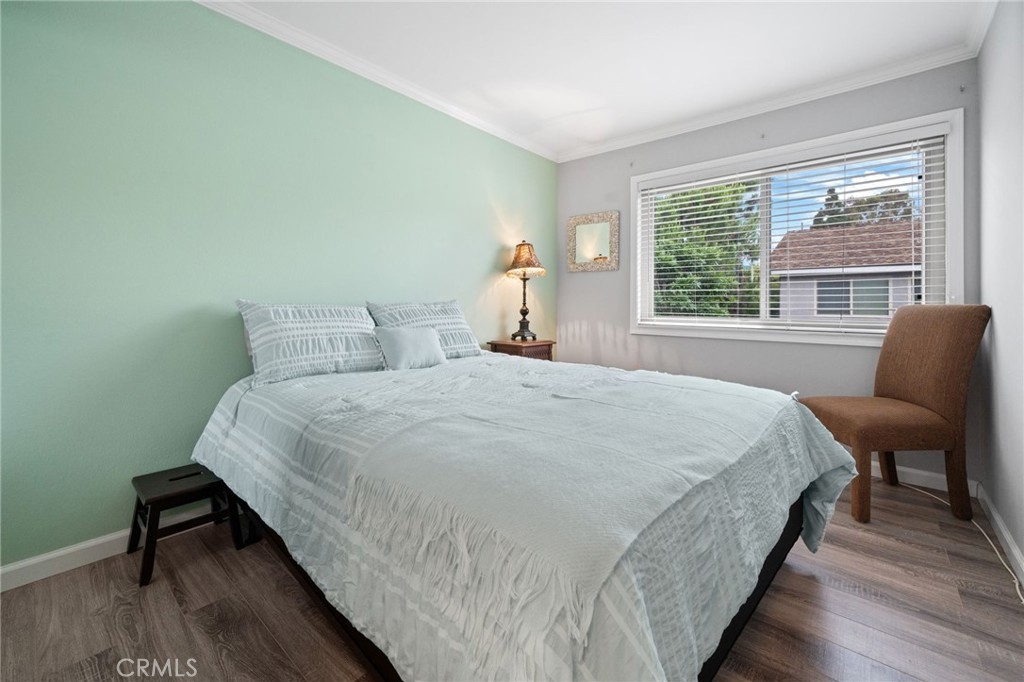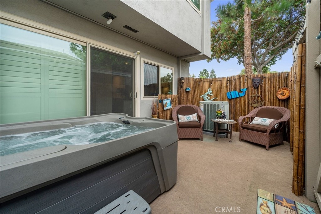 Introducing your perfect Huntington Beach home! This beautiful true 2-story townhouse boasts its own private entrance and shares only one wall with the neighboring unit. Step into the spacious living space, illuminated with natural light and adorned with rich wood-toned laminate flooring and elegant crown moldings. Downstairs, you'll find a rare gem - a recently upgraded bathroom with a shower. Your dream kitchen awaits, complete with modern stainless steel appliances and stunning white cabinets complemented by textured black granite countertops. Enjoy the convenience of under-counter lighting and plenty of storage and counter space. The kitchen also features extra cabinets with a TV hookup for added entertainment value. Adjacent to the kitchen is your personal laundry room, equipped with a washer and dryer, and ample cabinets for easy organization. Step outside to your own private fenced patio - the perfect spot for relaxation and outdoor enjoyment. You'll also have quick access to two tandem parking spaces with additional storage for your convenience. Throughout the entire home, you'll appreciate the tasteful touches of crown moldings, and the flooring is thoughtfully designed with tile in the kitchen, baths, and laundry room, while the rest of the living space features stylish laminate flooring. Upstairs, the three bright bedrooms await, each adorned with laminate flooring and crown moldings. The recently upgraded upstairs full bathroom can be accessed directly from the bedroom or from the hallway, ensuring convenience for all. Rest assured, this home has dual pane windows to keep your living space quiet and comfortable, and central A/C for optimal climate control. On top of it all, you'll have access to a community pool for leisurely relaxation, and the location couldn't be more convenient, with plenty of shopping, restaurants, parks and the beach close by. Don't miss the chance to make this remarkable townhouse your new home!