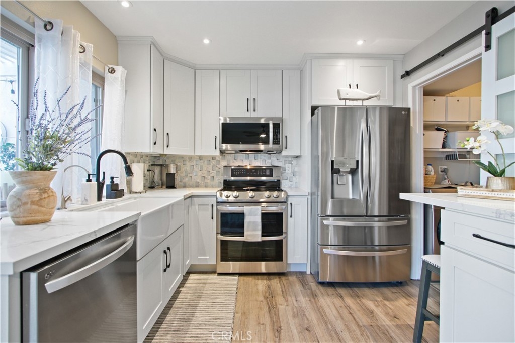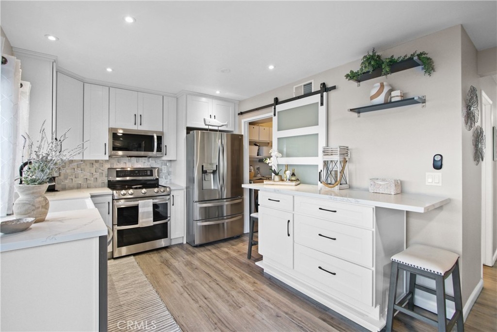 Beautiful 3-bedroom, 2 bath, townhouse located in the beautiful coastal city of Huntington Beach. It all starts when you walk through the front door with luxury vinyl throughout home, custom painting, dual pane windows, ceiling fans, large open family room, remodeled kitchen complete with all new shaker cabinets, quartz counter tops, backsplash, large white barn sink, sensor faucet, spice rack, lazy susan and all new stainless-steel appliances with double oven with a custom-built moveable quartz island designed specifically for the kitchen. As you make your way upstairs you will notice 2 very spacious bedroom with ceiling fans and mirrored closets, and right across the hall you have your large luxurious master bedroom with 2 closets and plenty of space for that California King. This property has too many upgrades to mention. This one is a must see. Don't forget about the entertaining backyard-patio, complete with fire pit and patio furniture for those summertime BBQs with friends and family. Did I also mention 2 large tandem parking spaces with ample size storage closets to fit bikes, surfboards, and plenty of other items. This property is located just a short distance from the beach, shopping centers, biking trails, restaurants and has close freeway proximity. Also, for the hot summer days the Huntington Township complex offers a refreshing pool. Hurry this one will not last. Bring your fussiest clients because this property will not disappoint.