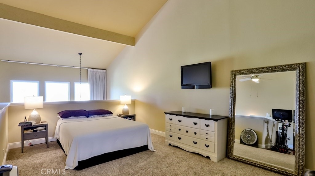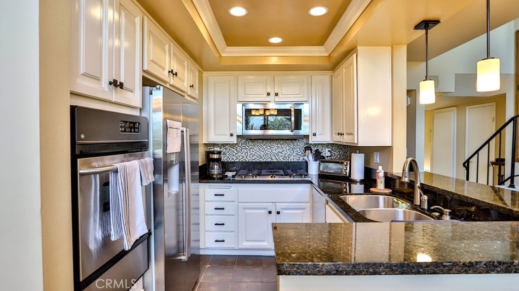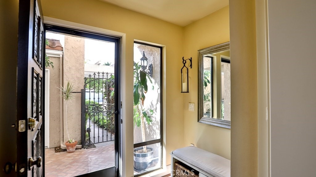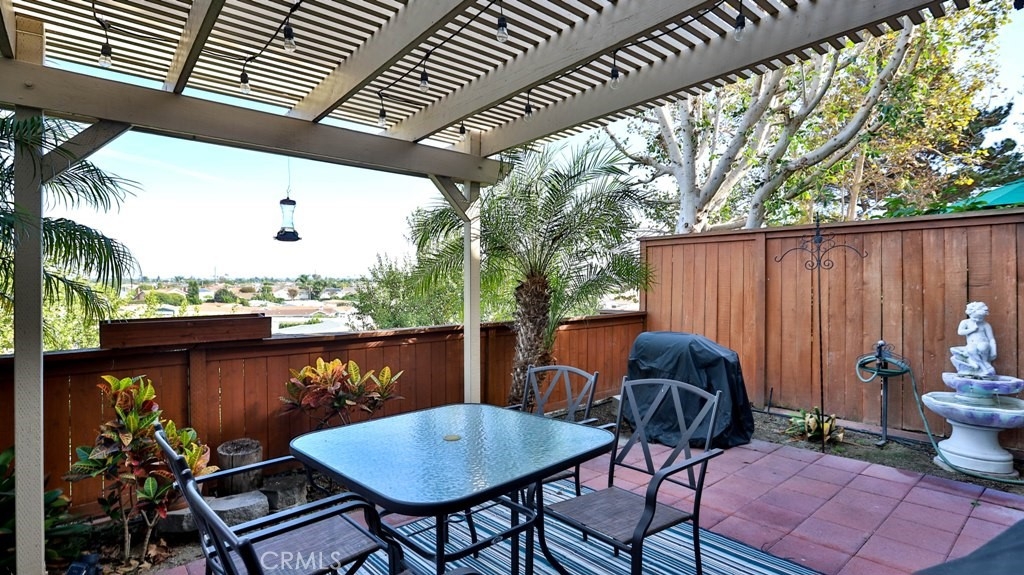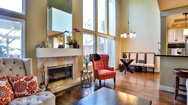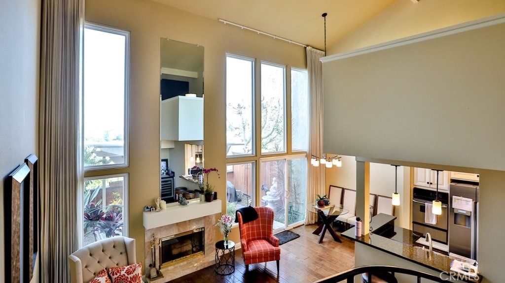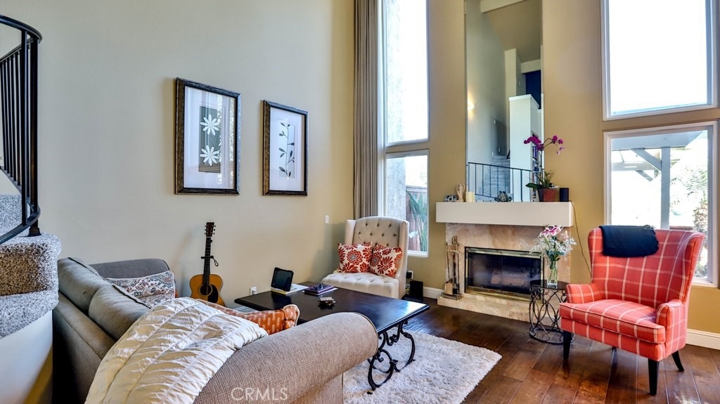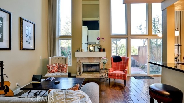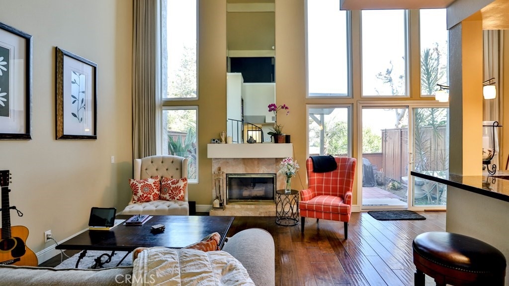 Resort living near the beach! Two bed, two bath town home with city view is ready for immediately move-in. Private entrance thru a green flush court yard. The first bedroom is on first floor with its own sliding door to court yard. Master suite has the entire second floors. Fully remodeled master bath and walk-in closet with high end organizer. Both upstairs and downstairs windows open to city view. Cathedral ceiling in living and dining area with wood burning fireplace. Gourmet kitchen features bar sitting area, wine cooler, stainless steel new fridge and granite countertop. Refrigerator, Washer/dryer, TV included. Private backyard with patio and view. HOA includes a gym, tennis courts, swimming pool. Short distance to Huntington Beach Five Point shopping Center, Main Street, Pier, Bella Terra Mall, schools, churches. Please schedule a tour today.
