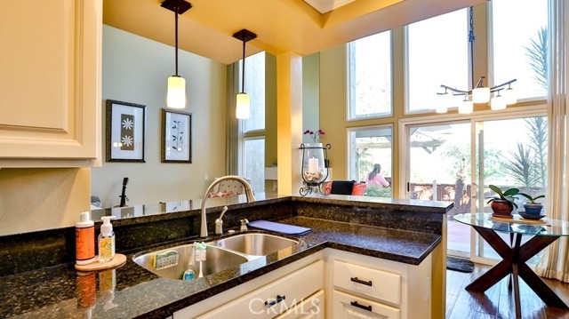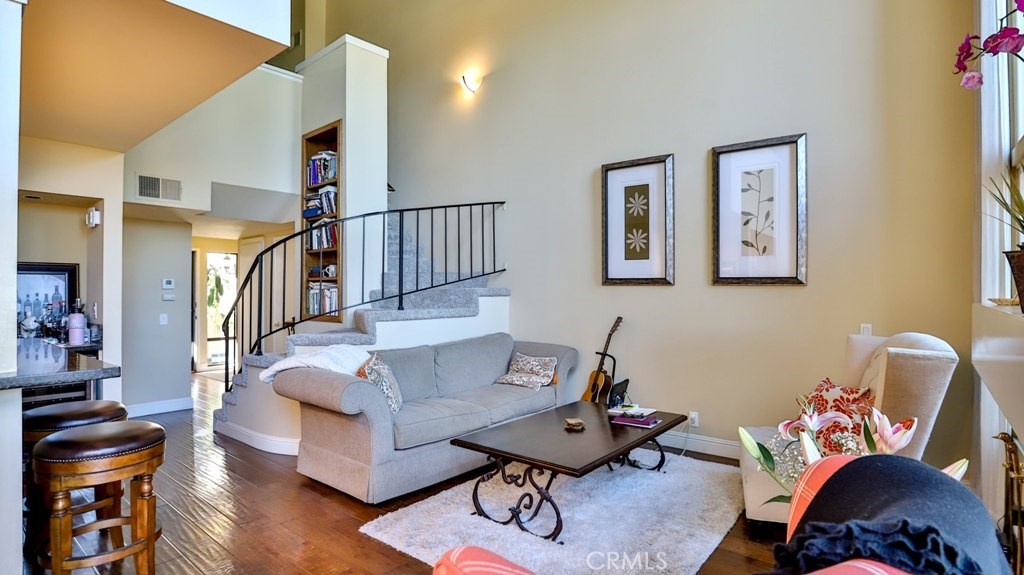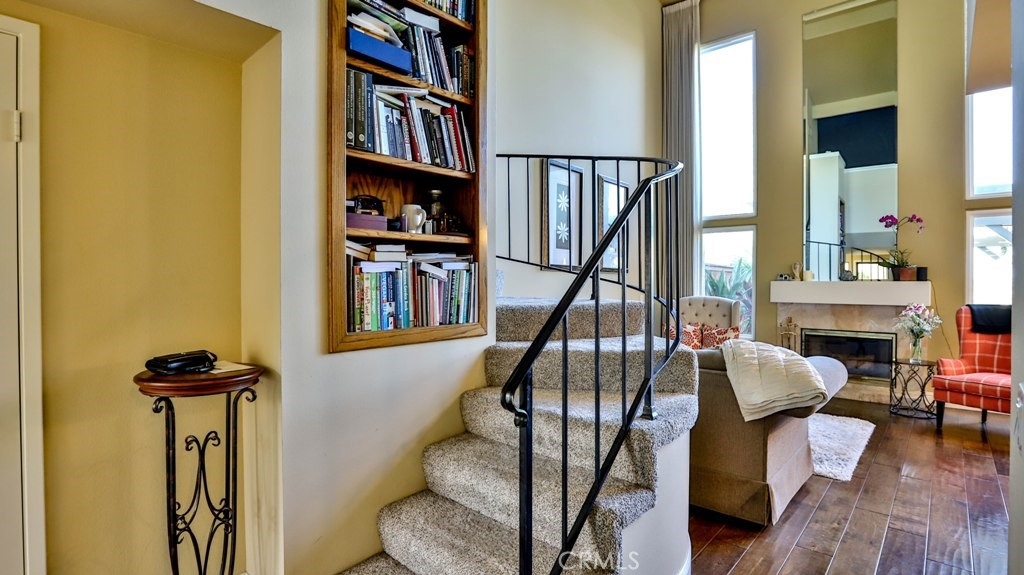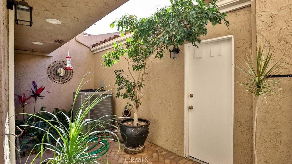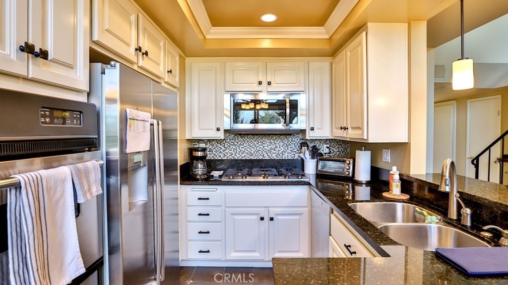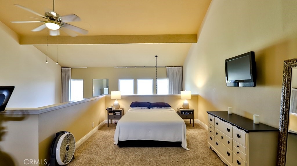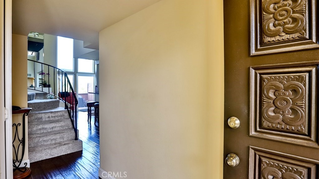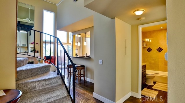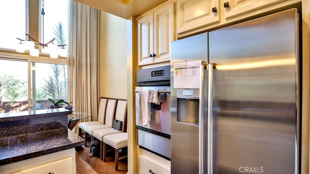 Resort living near the beach! Two bed, two bath town home with city view is ready for immediately move-in. Private entrance thru a green flush court yard. The first bedroom is on first floor with its own sliding door to court yard. Master suite has the entire second floors. Fully remodeled master bath and walk-in closet with high end organizer. Both upstairs and downstairs windows open to city view. Cathedral ceiling in living and dining area with wood burning fireplace. Gourmet kitchen features bar sitting area, wine cooler, stainless steel new fridge and granite countertop. Refrigerator, Washer/dryer, TV included. Private backyard with patio and view. HOA includes a gym, tennis courts, swimming pool. Short distance to Huntington Beach Five Point shopping Center, Main Street, Pier, Bella Terra Mall, schools, churches. Please schedule a tour today.