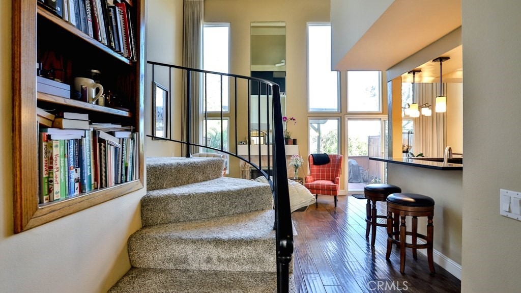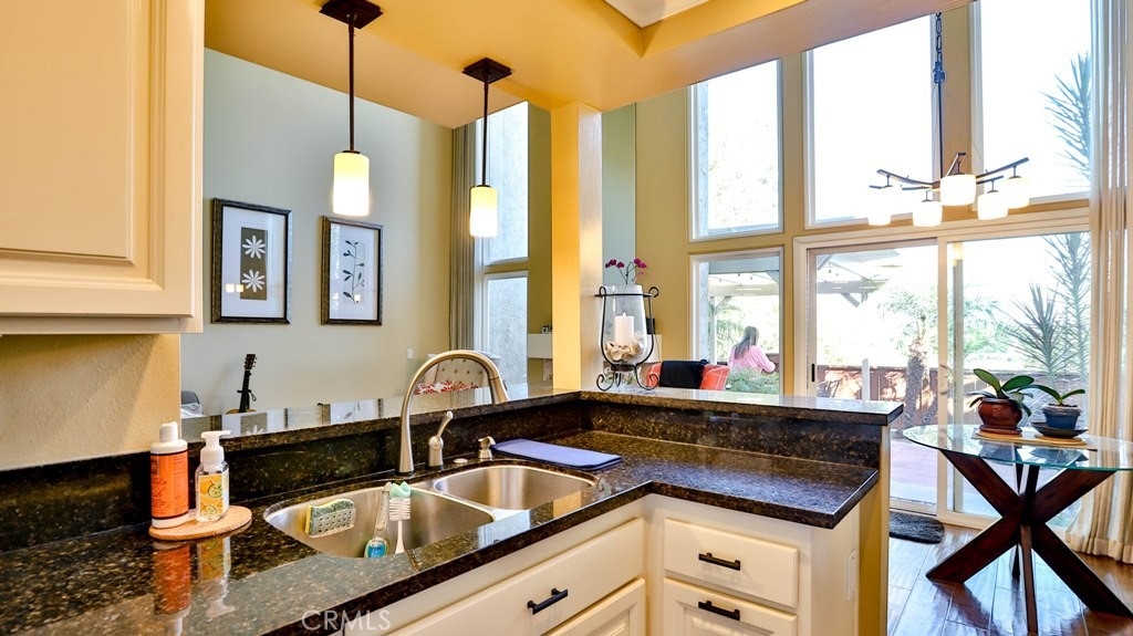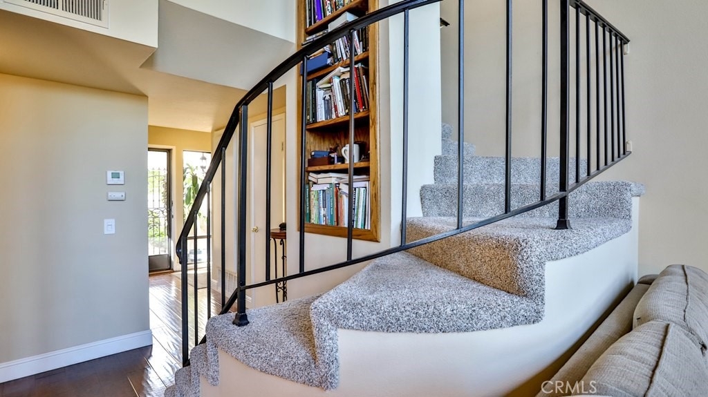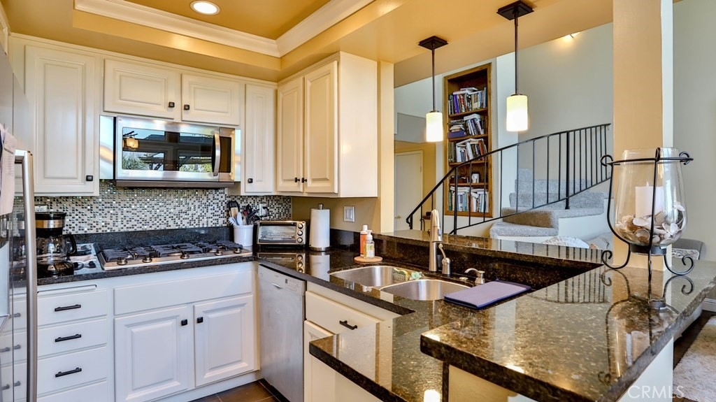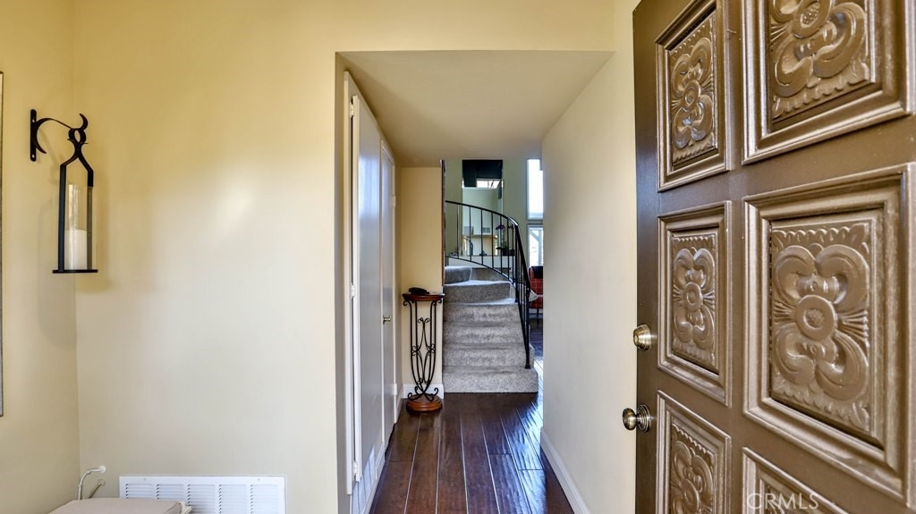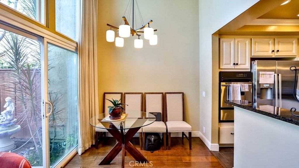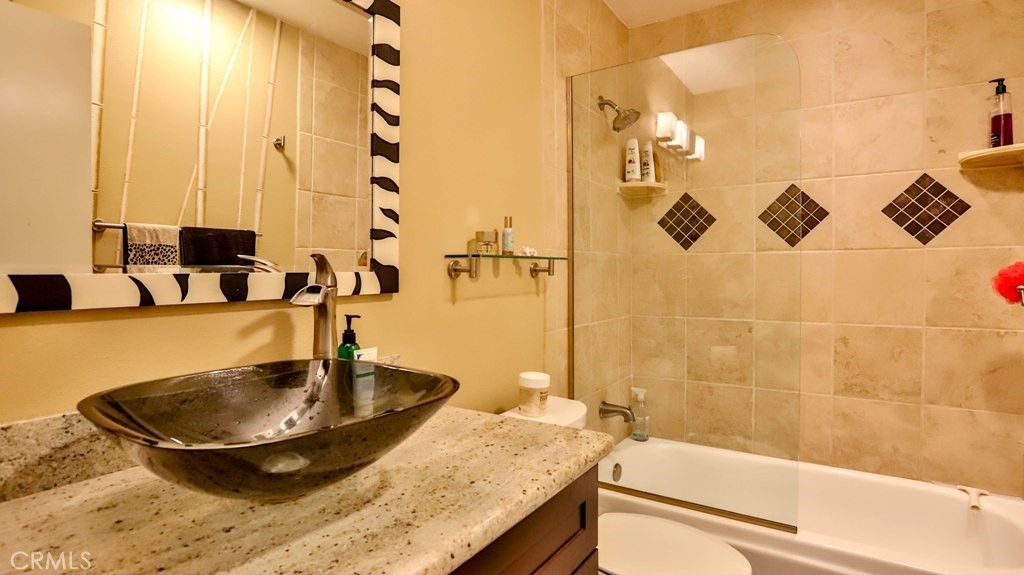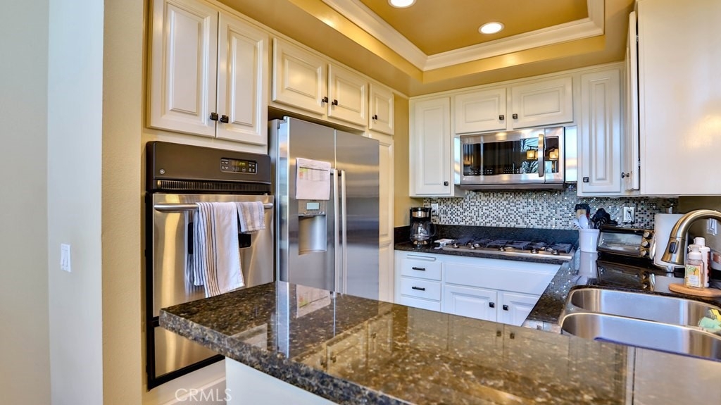 Resort living near the beach! Two bed, two bath town home with city view is ready for immediately move-in. Private entrance thru a green flush court yard. The first bedroom is on first floor with its own sliding door to court yard. Master suite has the entire second floors. Fully remodeled master bath and walk-in closet with high end organizer. Both upstairs and downstairs windows open to city view. Cathedral ceiling in living and dining area with wood burning fireplace. Gourmet kitchen features bar sitting area, wine cooler, stainless steel new fridge and granite countertop. Refrigerator, Washer/dryer, TV included. Private backyard with patio and view. HOA includes a gym, tennis courts, swimming pool. Short distance to Huntington Beach Five Point shopping Center, Main Street, Pier, Bella Terra Mall, schools, churches. Please schedule a tour today.
