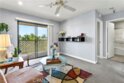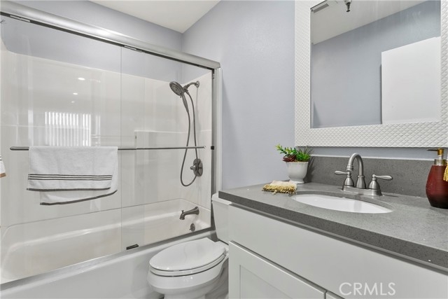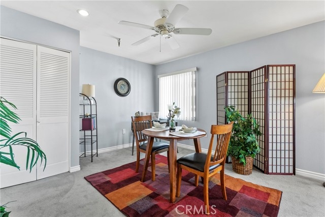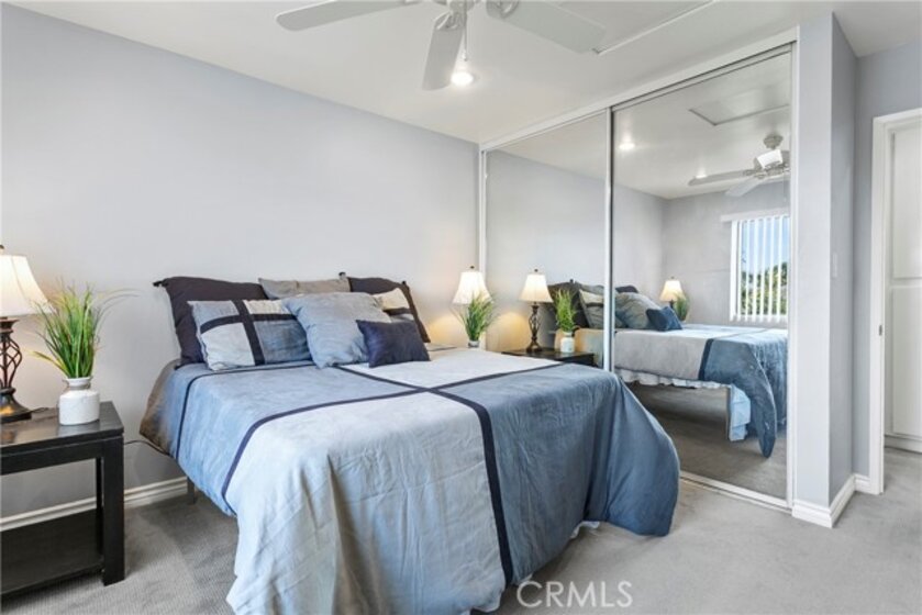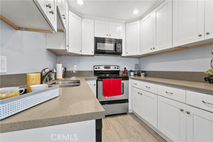 This is the most unique top floor unit in the 55+ community! The extra large corner location is full of light from the living room windows and the full wall slider that has a view looking south east. Enter your private oasis from the hallway that is steps away from the elevator. The entertainment area has a storage closet and mounted shelving. The dining area with another ceiling fan is centered to the remodeled kitchen with recessed lighting, white cabinetry, stone counter tops, electric range, dishwasher, microwave and refrigerator. The bedroom features a ceiling fan and full wall mirror slider closet. The remodeled bathroom has a vanity with stone counter and tub/shower combination with glass doors. Additional storage is in the linen closet between the bedroom and bathroom. The community laundry is on the same floor just around the corner. Access to this active community building for guests is from the call box intercom activated front door to the welcoming lobby entry where the mailboxes are. The community room features a fireplace, and multiple seating areas to relax with other residents. Here you can find a lending library, puzzles, and games for entertainment. This condo is assigned a covered parking space with storage in the gated parking lot. All of this within walking distance from Five Points Shopping Center with shops, a bank, groceries, dining, and other services. The famous downtown area of Huntington Beach, the pier, and sandy beach are just a short drive away. Purchases must be in CASH due to the land Lease that expires in 2035. This condo can be home as a full time home, vacation retreat or investment property. You don't want to miss it.