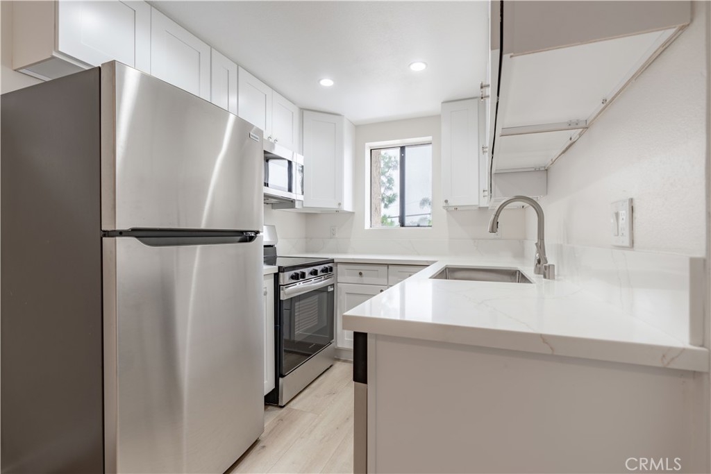 Property is on a land lease. Independent Senior Living awaits you on this second floor accessible with an elevator. The entire unit was fully remodeled: new luxury vinyl throughout, new baseboards, new recess lighting, new ceiling fan, new closet door, and new paint. The kitchen was 100% redone with new kitchen cabinets, new sink, new faucet, new quartz countertop, new hardware, new plumbing, and new appliances. Bathroom was also redone with new vanity, new faucet, new hardware, new toilet, and more. The community HOA has recently repainted the interior and installed new flooring. Features include a seating foyer entry, community room with fireplace, lending library, puzzle table and multiple seating areas. There is also a kitchen area. Mailboxes are located in the lobby. Guests can call from the front door with the intercom system. One dedicated parking space is located conveniently inside the gate. Prime Huntington Beach Location. This condo is located just minutes from Five Points Shopping Center, where you’ll find everything from grocery stores, pharmacies to local dining. & entertainment. The famous Huntington Beach coastline, with its sandy beaches & stunning sunsets, is only a short drive away, making it easy to enjoy the SoCal lifestyle. Property is CASH only due to Land Lease going to 2035. Life at 18900 Delaware Ave goes beyond your front door. The community offers a large activity room filled with games, puzzles, books, and plenty of opportunities to socialize with neighbors. A shared laundry room adds convenience, while the friendly atmosphere encourages connection and camaraderie. An Active and Relaxing Lifestyle Huntington Beach is known for its vibrant, active lifestyle, and this community is no exception. Enjoy nearby parks, cultural events, and recreational opportunities tailored for seniors. Whether you’re strolling along the greenbelt, relaxing on your patio, or exploring the town, every day offers something special. Why This Condo is Perfect for You Discover the beauty, comfort, and community of this wonderful Huntington Beach retreat.