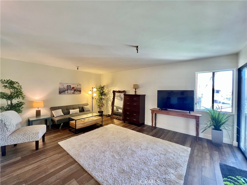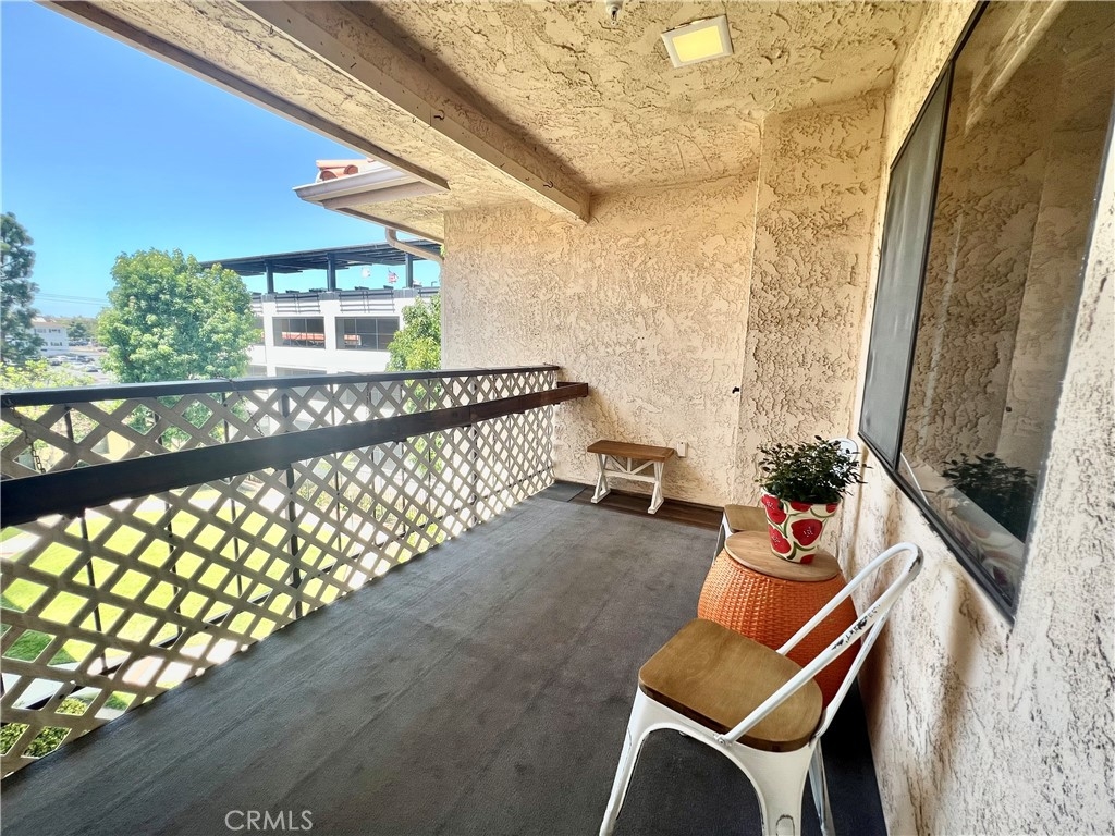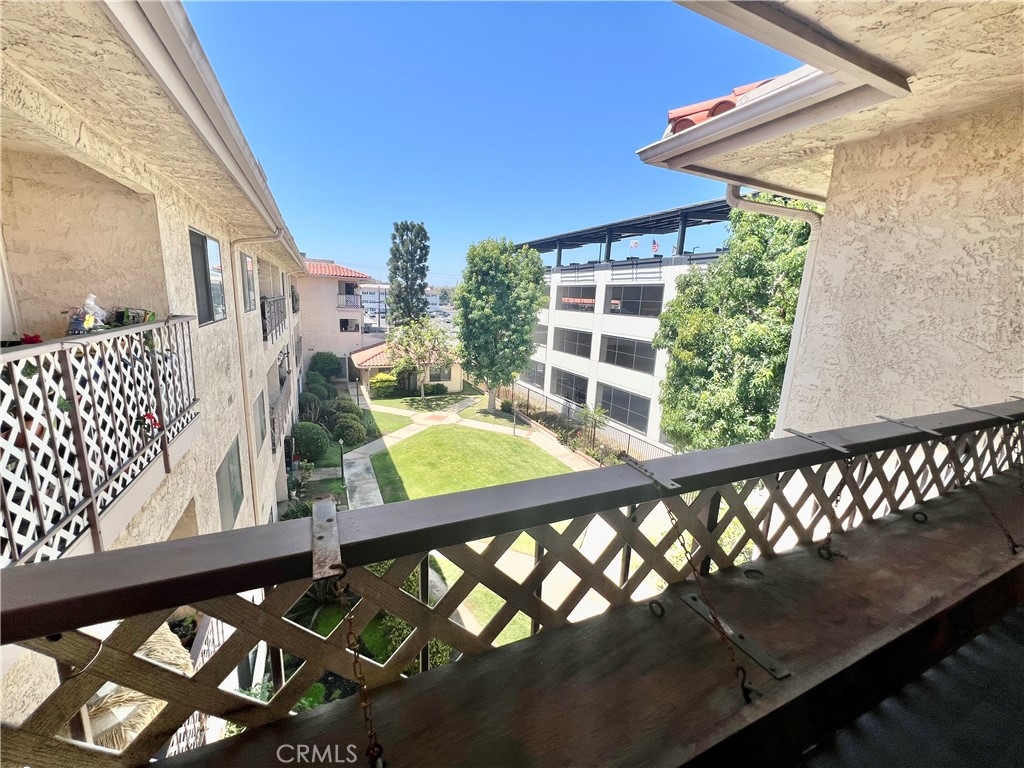 Wonderful Opportunity to live in an Independent 55+Community located in Fabulous Huntington Beach and just walking distance to 5 Points Shopping Center, Lots of Restaurants, Banking and a short drive to the Beach. This Highly Desirable 3rd Story, 1 Bedroom & 1 Bath Unit Features a Spacious Living Room and Dining Area, All Light & Bright Kitchen with Newly Painted White Cabinets & New Hardware, Tile Countertops, Blt-In Dishwasher, Range & Stove Top & Refrigerator, PLUS a Sunlit Bedroom with View. This Fabulous Unit also Includes All Newer Custom Wood Laminate Flooring & Interior Paint, Scraped Ceilings, Walk--in Storage/Pantry Closet PLUS It's own Private Outside Balcony Overlooking the Lush Interior Greenbelt and a Fully Covered and Gated Parking Carport. Note: HOA collects for and pays for water & trash and the monthly land lease which expires in 2035.