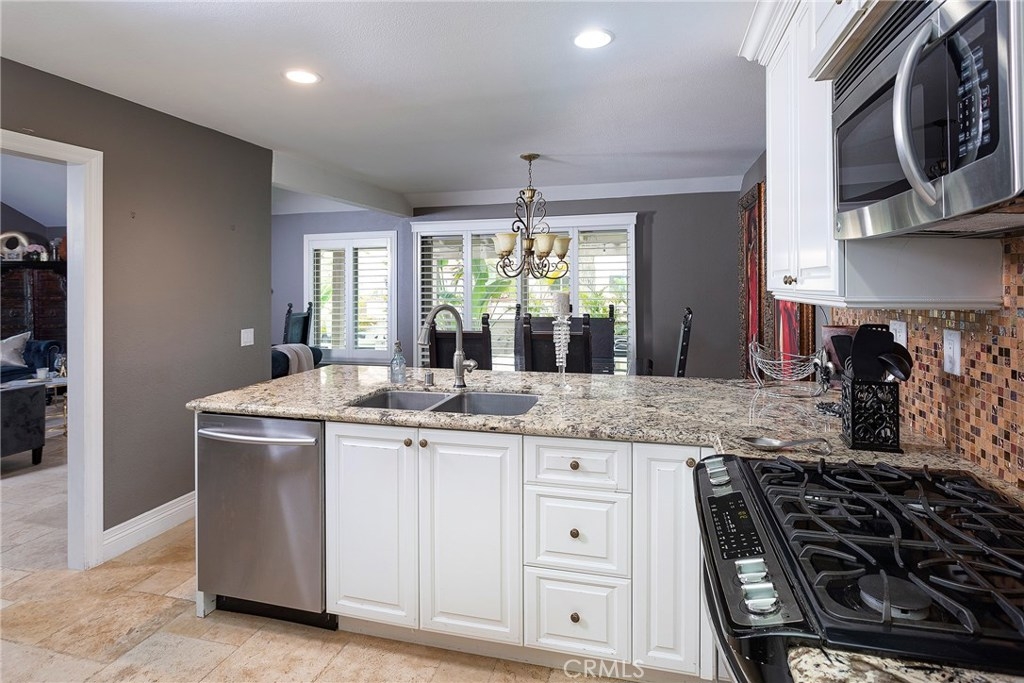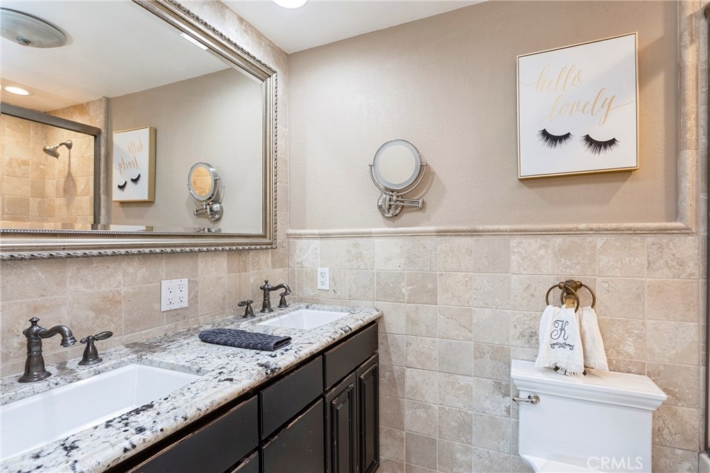One of a kind turnkey home in the highly desired La Cuesta by the Sea community in Huntington Beach. Just a couple minute bike ride to historic downtown Huntington Beach and Pacific City. No details were missed when this beautiful dual master suite (1 down stairs and 1 up stairs), 3 bed 2 bath home was remodeled! Detail is noticed immediately through the inviting open floor plan with vaulted ceilings, custom grand fireplace, distressed tile floors, plantation shutters throughout, and surround sound. The kitchen shows off custom cabinetry, upgraded granite counters, 1x1 tile back splash and stainless steal appliances while the master suite up stairs boasts a custom ceiling with up-lighting and surround sound, not to mention the massive walk in closet with a changing table/island and plenty of built in storage! Being a corner unit, outdoor space is not forgotten with the expansive covered private patio and huge greenbelt right outside your door!