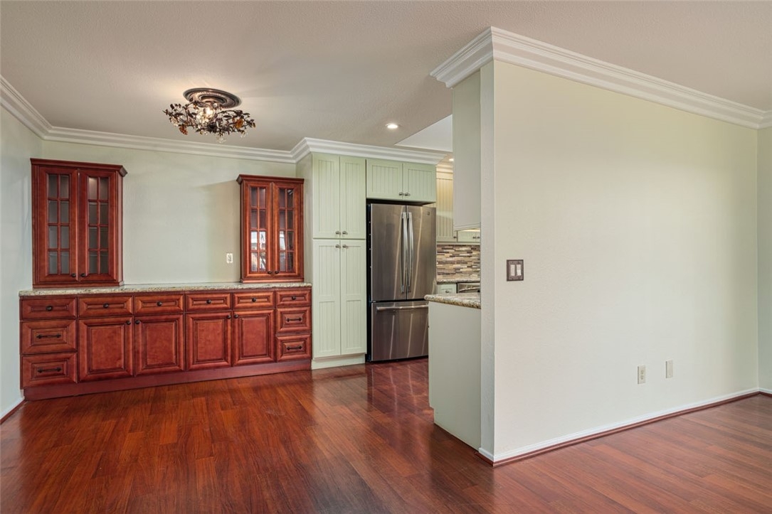 Lowest priced 2 bedroom home this close to the beach! This single family attached home is located in a gated community only about 1 mile to the beach. It’s a true single story with nobody above or below. It is also an end unit & located in the center of the complex away from traffic noise. The double doors in front opens up to a beautifully landscaped greenbelt. The living room is very spacious & bright with a large window overlooking the lawn in front of the unit & sliding glass doors leading to the enclosed patio. It has beautiful crown molding & dark laminate floor which continues into all the rooms except the hallway & the second bath. The living room flows into the dining area which features a beautiful built-in cabinet/buffet of dark wood and granite. Adjacent to the large dining area is the remodeled kitchen in modern farmhouse style. It has a huge skylight bringing in an abundance of natural light in addition to the light from the window over the sink. The cabinets are newer with soft close drawers, pantry with pull out shelves, lazy susan, under-cabinet lights & more. The counters are granite & matches the one in the dining area. All appliances are stainless steel & included in the sale. There are also recessed lights with dimmers in this area. The primary bedroom is huge, has large windows with wood shutters, double-door entry, crown molding & wide baseboards as well as a ceiling fan. It has an upgraded bathroom with a newer vanity, granite top & a great walk-in closet. The tiled shower has a fabulous skylight! For added privacy there is a door between the vanity & the area with the toilet & shower. The secondary bedroom also has a ceiling fan & wide baseboards along with a generously sized closet. The second bathroom features a shower over the bathtub. The hallway has excellent storage closets. Throughout the home you’ll find dual pane windows & slider and the interior has been freshly painted. The low maintenance patio has a fence providing great privacy & there is plenty of space for outdoor furniture for lounging/entertaining. The washer & dryer are located behind double doors in the storage closet on the patio. There is also a gate for access to the cul-de-sac and parking. The garage is in close proximity to the unit & there is more parking in the complex. This complex offers resort style pool, tennis court & Club House & is very close to the beach, Pacific City, Main St, shops & restaurants. Floor plan is in the supplement section.