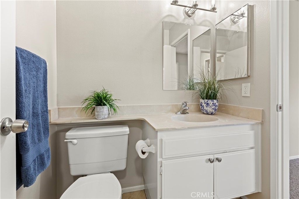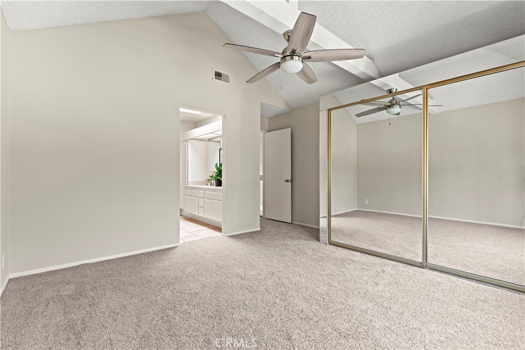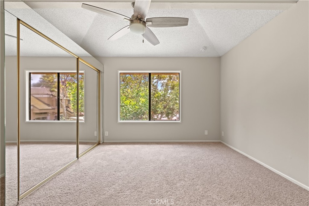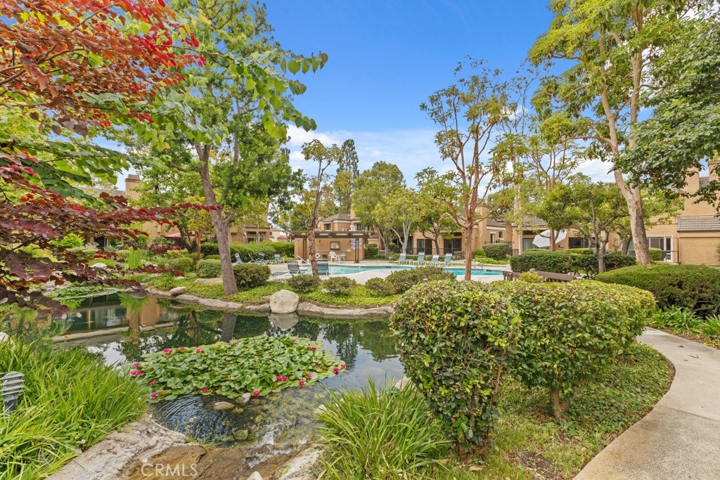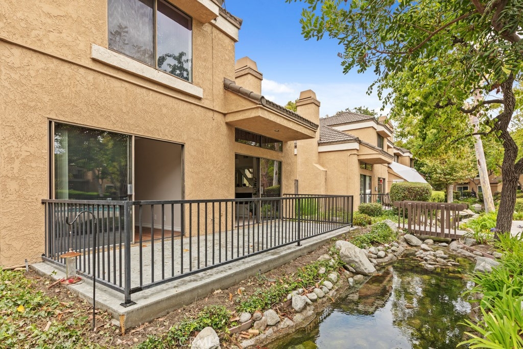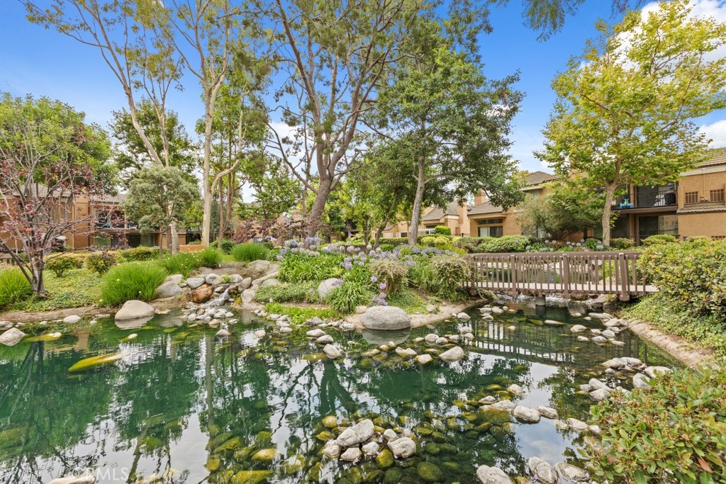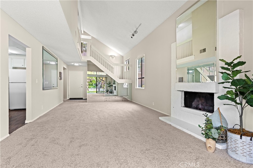 Welcome to Millstream, an exclusive gated community offering a rare blend of peace, privacy, and prime location—just 10 minutes from the beach! Set among lush greenbelts, meandering streams, cascading waterfalls, and scenic walking paths, this community feels like a private resort tucked away in the heart of a vibrant beach city. This beautiful 3-bedroom, 2.5-bath home spans 1,520 square feet and has been freshly enhanced with new interior paint and plush new carpet throughout. The open floor plan and vaulted ceilings create a bright, airy atmosphere, while large windows invite natural light into every room. The living room features a cozy fireplace and a sliding door that opens directly to your expansive, newly refinished private patio. The adjacent dining area also has its own slider, offering seamless indoor-outdoor flow and easy access to the tranquil setting—perfect for entertaining or simply enjoying the peaceful views of a meandering brook and sparkling pool. This premium location is widely considered the best in the community. One of the three bedrooms is conveniently located downstairs along with a bathroom—ideal for guests, a home office, or multi-generational living. Upstairs, the spacious primary suite serves as a true retreat with soaring vaulted ceilings, abundant natural light, a large walk-in closet, and a primary bath featuring dual sinks for added convenience. Additional highlights include a two-car garage, ample guest parking, a newer refrigerator, and a convenient stackable interior washer and dryer. Millstream’s resort-style amenities include tennis courts, a refreshing pool, and a relaxing spa, all surrounded by beautifully maintained grounds. With top-rated schools nearby and quick access to shopping, dining, and major freeways, this home offers the perfect blend of coastal charm and everyday convenience. Don’t miss this rare opportunity to own a stylish, move-in-ready townhome in one of the most peaceful and sought-after gated communities—just minutes from the beach. Your coastal lifestyle starts here!