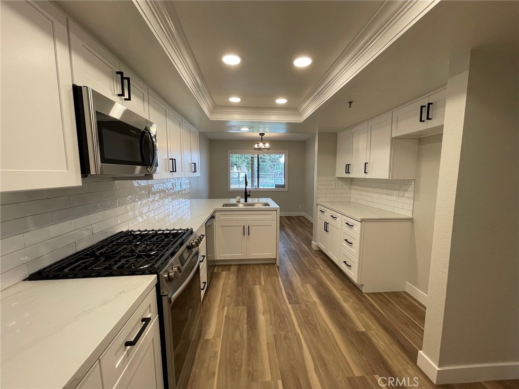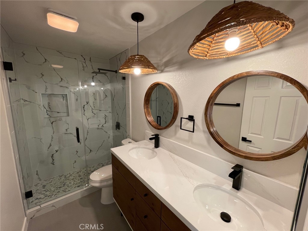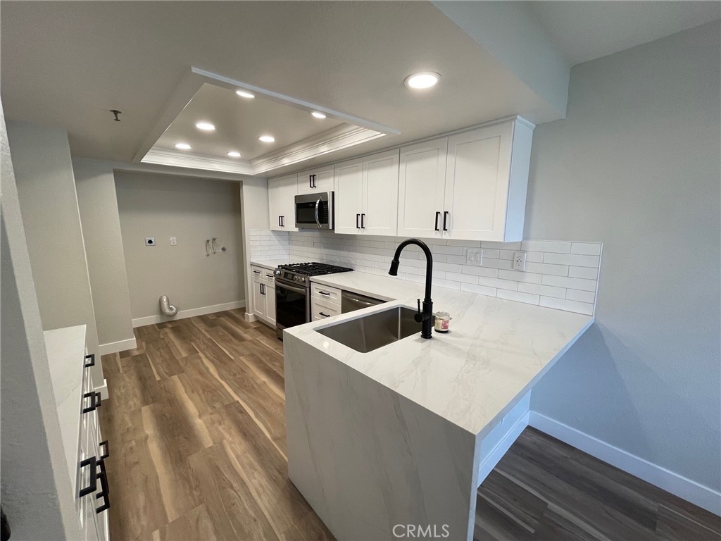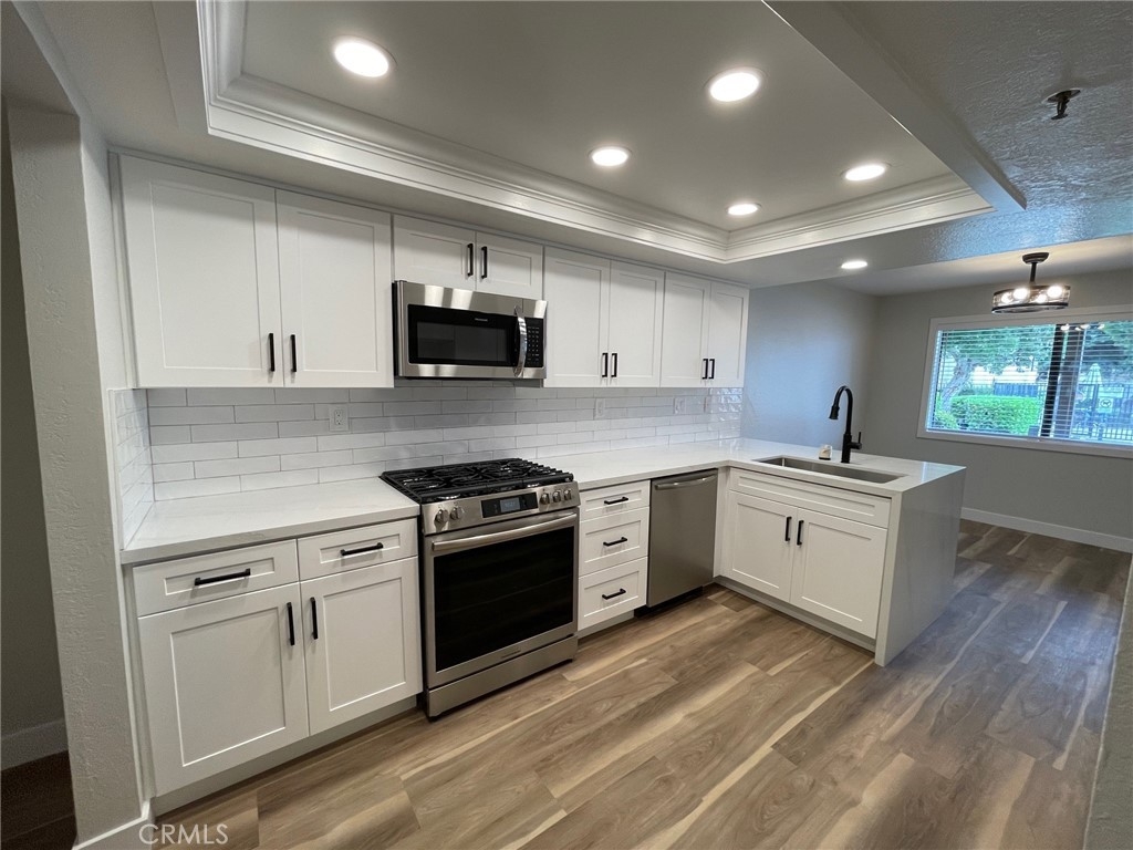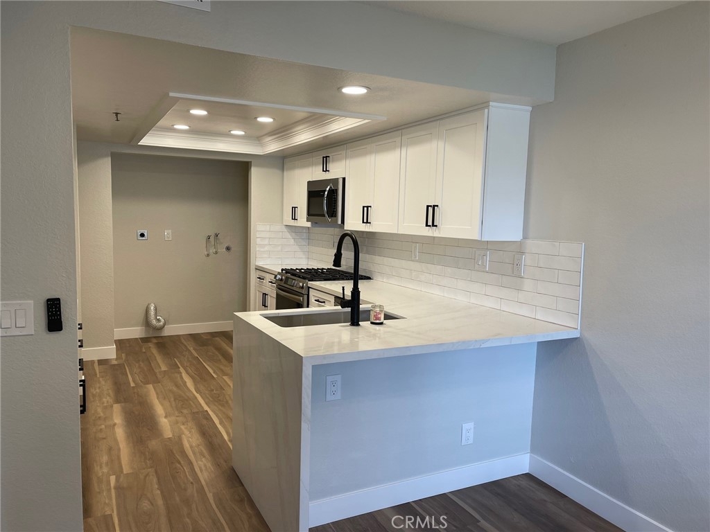 Discover Coastal living at its finest in this fully remodeled and modernized lower unit featuring two spacious bedrooms and two full bathrooms, complete with a generously sized private patio. Flooded with natural light, the open floor plan boasts new window coverings, stylish light fixtures, and a redesigned kitchen equipped with sleek Quartz countertops, new cabinets, new appliances and waterfall breakfast nook. Both bathrooms have been fully remodeled, showcasing new cabinets, countertops, mirrors, and lighting. The inviting living room features a beautiful fireplace, upgraded recessed lighting, and offers a lovely view of the pool and greenbelts. New vinyl wood flooring and baseboards throughout, along with a fresh, neutral paint palette, create the perfect “beachy” atmosphere. This is an excellent opportunity to reside in a well-maintained gated community with full ownership in Huntington Beach. This community offers subterranean parking, in-home laundry hookups, a swimming pool, spa, tennis court, and pet friendly policies. The monthly HOA dues covers water and trash. It’s also a short distance to public schools, fitness centers, freeway access, the John Wayne Airport, the Bolsa Chica Wetlands, and the International Surfing Museum. Don’t miss out on this incredible opportunity!