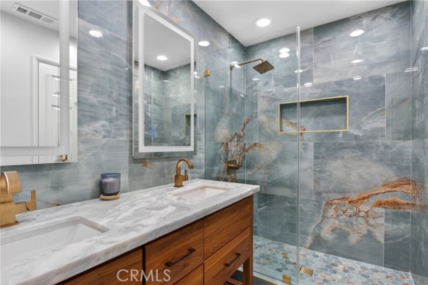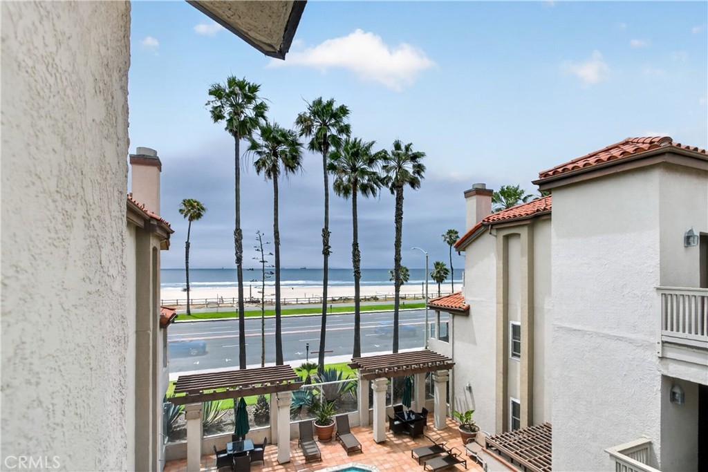 Oceanfront condo just steps from the sand and a short stroll to Main Street and Pacific City. Take in sweeping views of Catalina Island and unforgettable sunsets from your private retreat. Step out onto your expansive deck and check the surf in real time—your own front-row seat to the coastline. This turnkey, single-level top-floor residence offers elevator access, soaring vaulted ceilings, and a bright, breezy ambiance that captures the essence of coastal living. Thoughtfully designed for comfort and ease, the home features added recessed can lighting, enhancing the warm and inviting retreat-like atmosphere throughout. As you enter, you’re welcomed by a beautifully remodeled kitchen designed with both style and function in mind—featuring quartz countertops, stainless steel appliances, custom cabinetry, and elegant pendant lighting. The open-concept layout flows effortlessly into the casual dining area and spacious living room, creating an ideal setting for entertaining or simply relaxing while enjoying ocean views. The oversized deck, enhanced with glass panels, offers the perfect space for alfresco dining or unwinding with a morning coffee or evening glass of wine, all while taking in the ocean breeze and vibrant sunsets. This thoughtfully designed two-bedroom layout includes a guest bath with direct access to the secondary bedroom, along with a generously sized primary suite featuring dual closets. The primary bathroom has been fully transformed into a spa-like retreat, complete with a walk-in shower, refined finishes, and a serene coastal aesthetic. Residents of the Ocean Breeze community enjoy resort-style amenities including an ocean-facing pool and spa, on-site gym, secure bicycle storage, and two assigned parking spaces. Located in the heart of Surf City USA, Huntington Beach offers an unmatched coastal lifestyle with world-class surfing, scenic beach paths, vibrant downtown shops and dining, and year-round events like the U.S. Open of Surfing and the Pacific Airshow. A rare opportunity to own a premier oceanfront property—perfect as a full-time residence or a weekend escape where every day feels like a vacation. Welcome home.