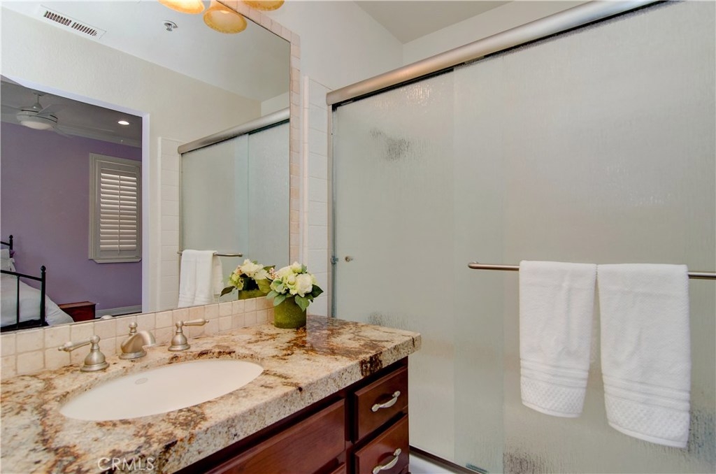 Beach living has its privileges. Imagine watching the waves crash from your master bedroom and lovely patio. A jewel in Huntington Beach, the 1400 building is ideally located, just steps from the sand and amazing Main St. restaurants and shopping! Beautifully upgraded open floor plan, a custom kitchen with granite counter, and upgraded appliances. Ceramic tile floors in the kitchen and living room accompany a cozy fireplace and patio. The Master bedroom has a full bathroom with a large Walk-in Closet. Your second bedroom has a private full bathroom with granite counters and tile floor. The laundry closet is located on the second floor with a stacked washer/dryer. This Condo community has only 42 units with a community pool and spa. This unit includes 2 parking spaces and secure bicycle parking. Don’t miss this opportunity to live walking distance to downtown shops and restaurants. A rare ocean view listing, and a wonderful place to call home.