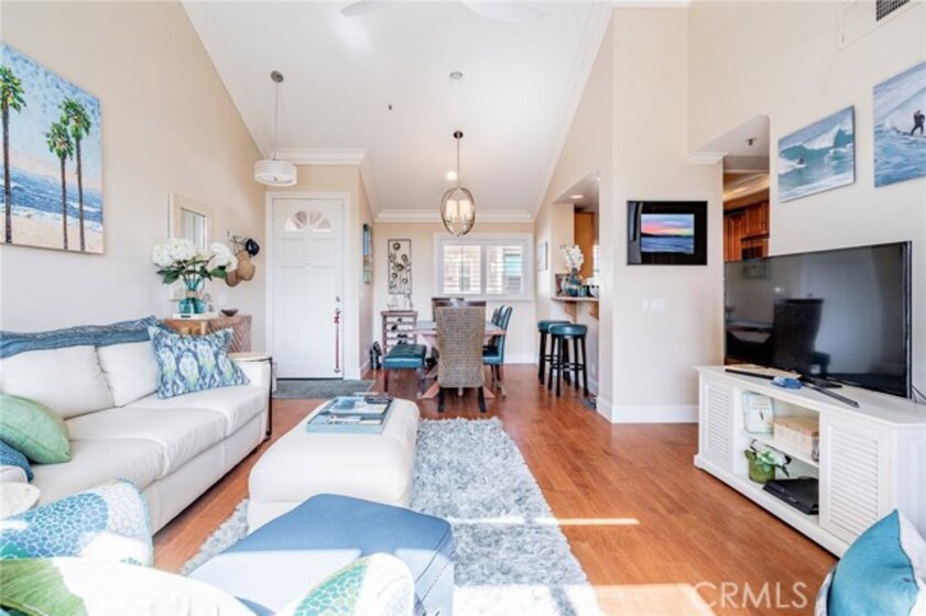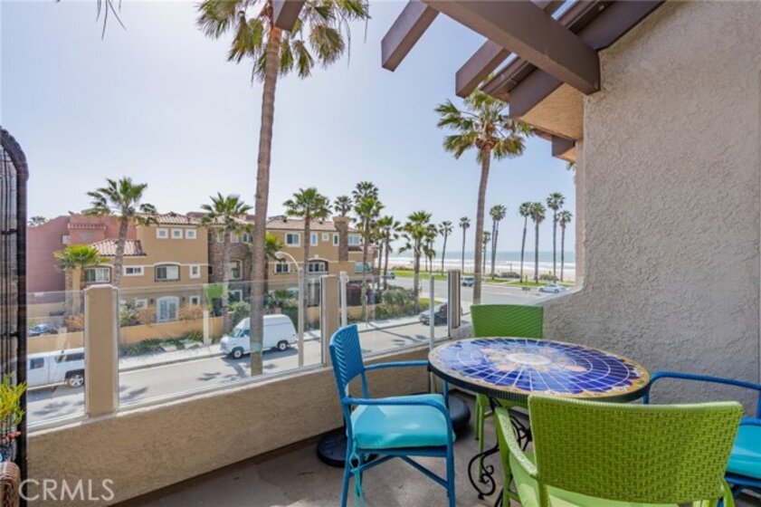 Rare opportunity to own a unique condominium located in prime area directly across from the beach.Enjoy the open floor plan with large living room and balcony with an amazing ocean view. This two bedrooms, two full baths, 965 square foot of living space features new hardwood maple floors, double-pane windows,Custom plantation shutters,Haiku fans,LG French door refrigerator and LG washer/dryer appliances & patio with ocean Views -Views- Views!! Few minutes walk to downtown Huntington Beach, restaurants and shops. This is a rare find not just in this complex but along the coast. As a resident, you are allocated two private and secured parking space, a private storage unit. The community pool, clubhouse, access to the beach allow you a respite, a place to savour the finest amenities and enjoy the prestigious community.
