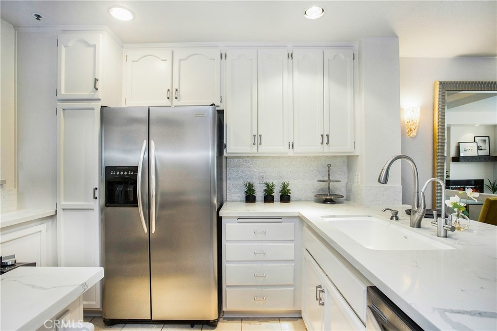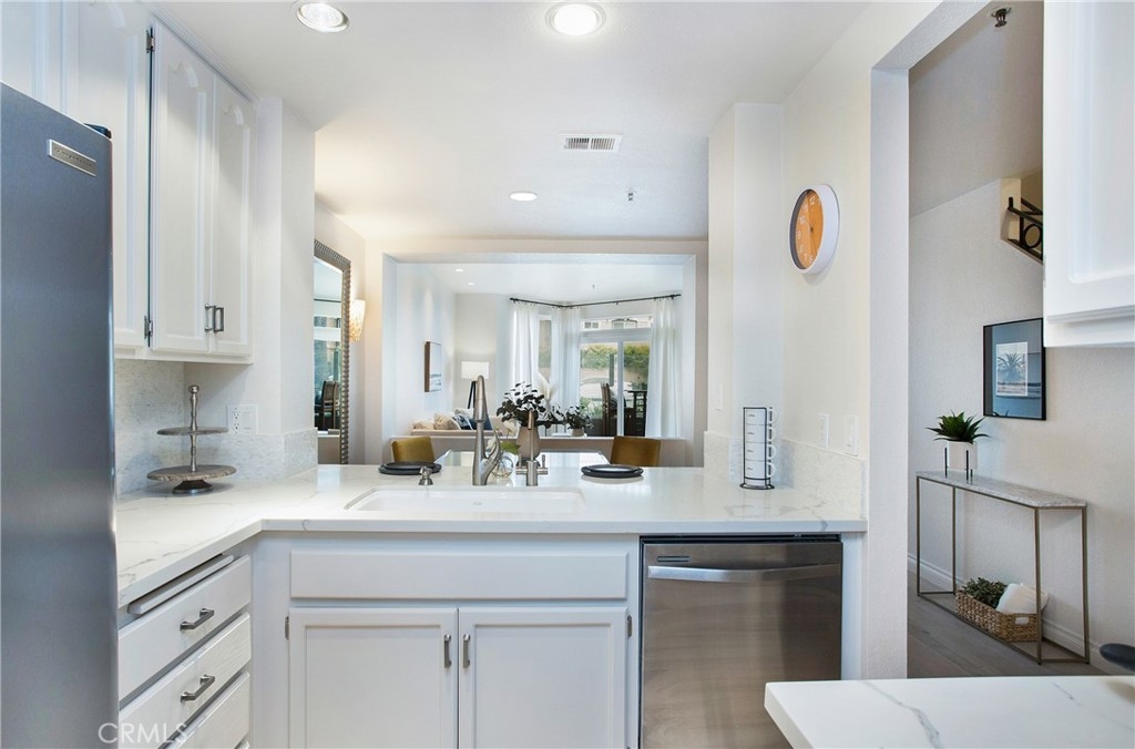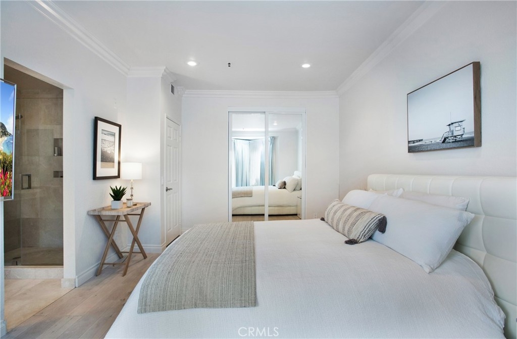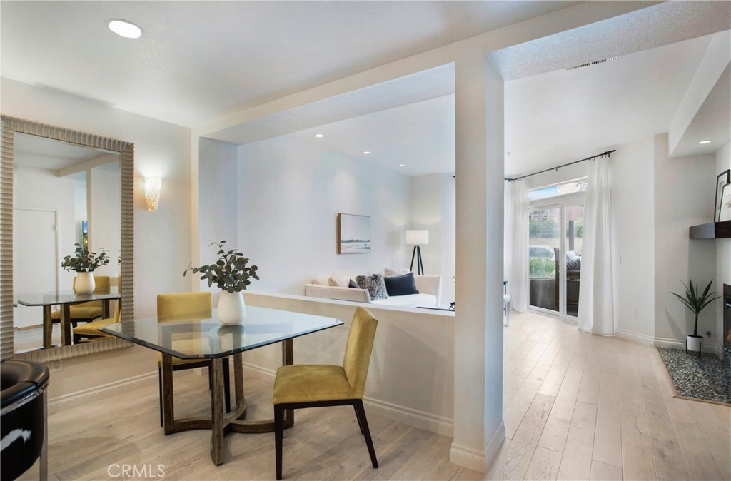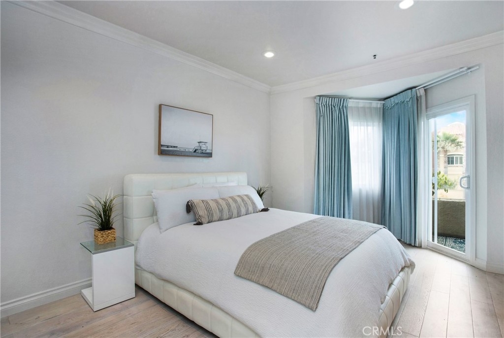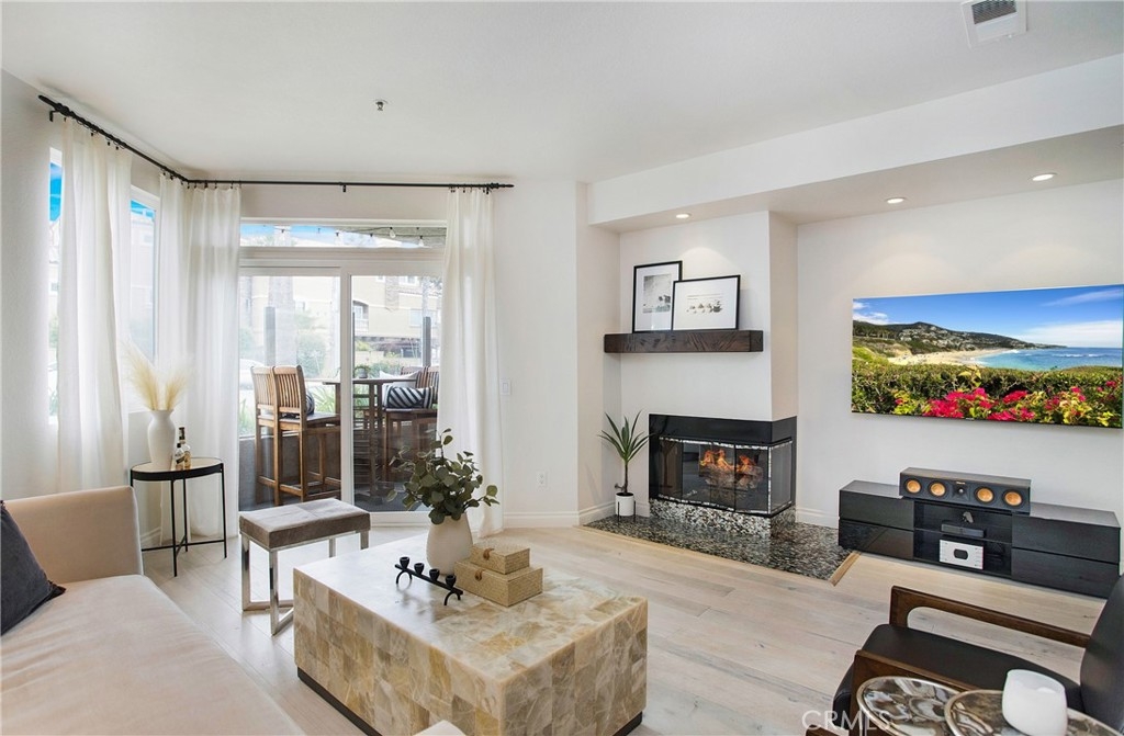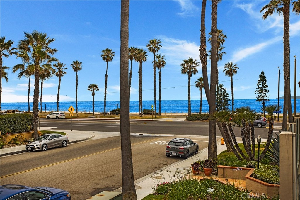 Coastal living in the gated enclave of Ocean Breeze Villas located on Pacific Coast Highway, a prime location steps from the ocean and walking distance to Huntington Beach pier, boardwalk, downtown, and OC’s premier dining/entertainment destination, Pacific City. This stunning 2 bedroom, 2.5 bath first floor residence, has been immaculately painted throughout, with elegant white-washed hardwood flooring for a modern, beachy feel. A beautifully updated kitchen with Carrera Quartz countertops, Seashell Mosaic backsplash, newly painted cabinets, custom blind, water filtration system and InstaHot purified water. The open floor-plan is a seamless transition from the kitchen, dining and living room, including sconce and recessed lighting, distressed wood mantle and recessed spotlight, custom mother-of-pearl fireplace, dual pane windows and a sliding door to a patio with ocean views and coastal breeze. The first floor also includes a modern half bathroom conveniently located for entertaining. Situated at the south-side of the complex, this unit has spectacular West views of the sunset, also enjoyed from the upstairs patio just off the Master retreat, including a custom closet and drapery, crown molding, recessed lighting, TV, surround sound hard-wiring and, an open-concept bathroom with tastefully chosen elements tying together a walk-in shower, vanity and separate commode. A secondary bedroom en-suite includes recessed lighting, a security safe, custom window covering and top-of-the-line, wall-to-wall mirrored closets for plenty of storage. The connected bathroom features a modern vanity and large pebble-bottom walk-in shower. A laundry closet with newer stacked washer/dryer, is conveniently located upstairs. High-end upgrades include hard-wiring for surround sound on both levels, Leviton WiFi Smart home switches, and Cryopreserved electrical outlets. HOA amenities include a newly plastered ocean-facing pool and spa, fitness gym, two side-by-side gated underground parking spaces, secured bicycle parking, trash, water, and temperature controlled private storage unit. Washer, dryer, refrigerator, security safe, and upstairs TV all included! This home has been thoroughly enjoyed, highly upgraded and meticulously maintained by the same homeowner for 18 years, with impeccable attention to detail and great pride of ownership. Home of the US Surf Open, 4th of July parade & firework show, yoga on the beach…Welcome Home to 1400 PCH, Surf City USA!