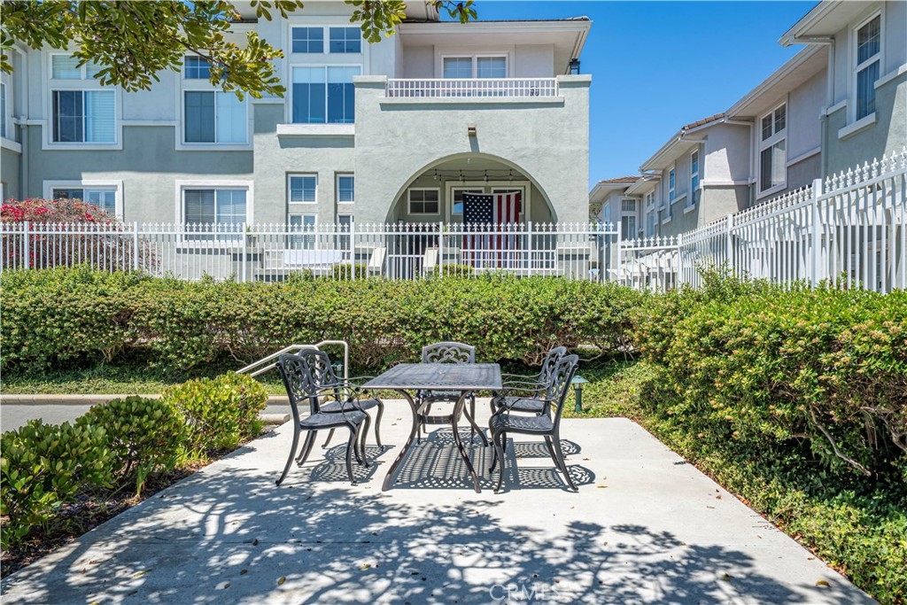 Luxury coastal living awaits in this stunning tri-level townhome located in the exclusive 22-unit Pacific Park Villas community—just minutes from the beach, shopping, dining, and award-winning schools. This 2-bedroom, 2.5-bath residence offers sophisticated architectural details and custom finishes throughout. Soaring ceilings, abundant natural light, and an open-concept layout set the stage for elegance, with features including plantation shutters, recessed lighting, crown molding, extensive wainscoting, ceiling fans, dual pane windows, and rich laminate wood and tile flooring. The formal living room boasts a stone fireplace and opens to a private front patio. Up a custom wrought iron and wood staircase, the dining area flows into the gourmet kitchen, complete with granite countertops, a butcher-block breakfast bar, stainless steel appliances, custom cabinetry, beadboard accents, and a tray ceiling in the adjoining family room with access to a second patio. A convenient half bath completes this level. Upstairs, you'll find two spacious en-suite bedrooms, including a luxurious primary suite with soaring ceilings, two mirrored closets with custom built-ins, and a spa-inspired bath featuring dual sinks, tile counters, a soaking tub, and a separate walk-in shower. Additional highlights include central A/C, an inside laundry room, and direct access to the finished 2-car garage with extra storage for bikes, kayaks or toys. Pacific Park Villas offers resort-style amenities including a pool, spa, and clubhouse—perfect for enjoying the relaxed coastal lifestyle year-round.