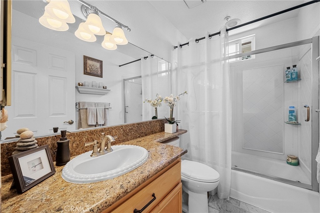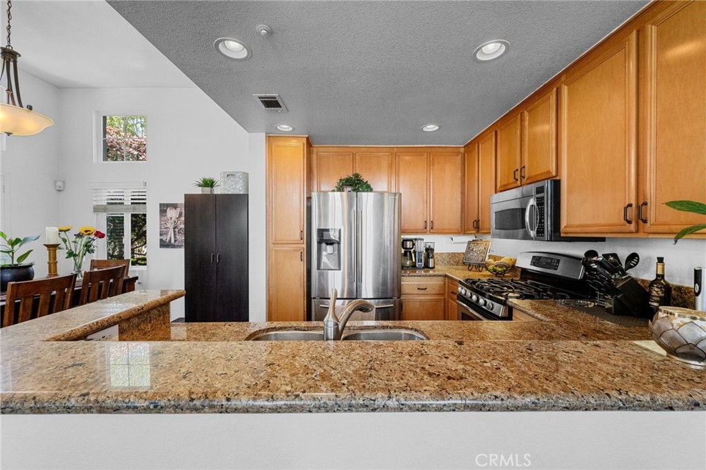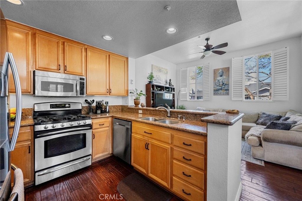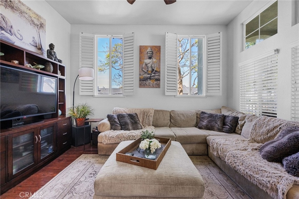 The units in the sought-after Pacific Park Villas community don't go on the market very often... This is your chance to own one of largest floorplans in the highly desirable 22-unit community! As you enter this large END UNIT condo, you are greeted with an OPEN floorplan, HIGH CEILINGS, and oversized windows that let in an abundance of natural light. The kitchen boasts GRANITE COUNTERTOPS and natural wood cabinetry, along with HARDWOOD FLOORS throughout the kitchen, dining area and living room. The spacious primary ensuite bedroom has TWO LARGE CLOSETS that lead into the bathroom which features DUAL SINKS and plenty vanity storage, plus a generously sized tiled soaking tub and walk-in shower. The downstairs bedroom closet has washer/dryer hookups and is right across from the DIRECT ACCESS to the TWO-CAR GARAGE with built in storage cabinets to keep your garage tidy and organized. To top it all off, this condo is located just MINUTES from the beach, shopping, entertainment, restaurants, and award-winning schools. The HOA amenities include the newly resurfaced pool and jacuzzi, termite/pest control, landscaping maintenance, walls out/in and earthquake insurance, and more! This one won't last long... Don't miss out on this gem in the heart of Huntington Beach.