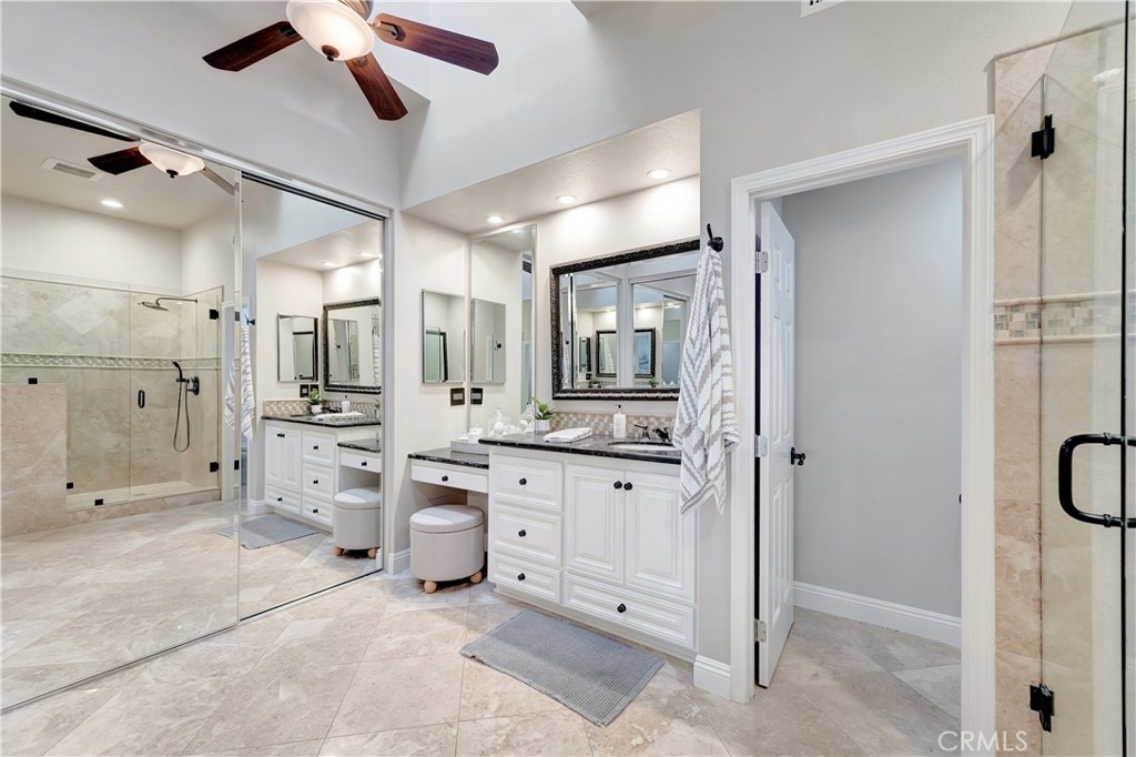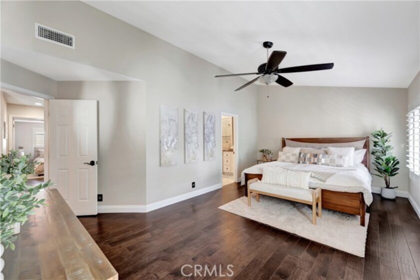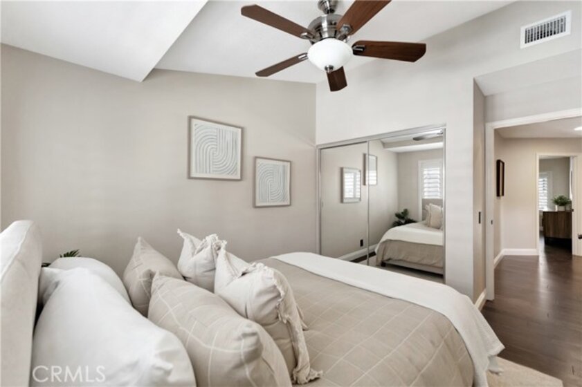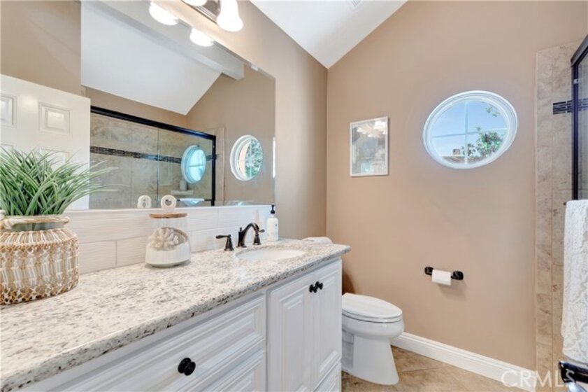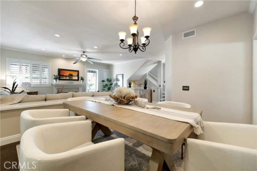 Welcome to this beautifully upgraded end-unit townhome in very quiet location within the highly sought-after, guard-gated community of Pacific Ranch, just minutes from the coast. Offering 4 bedrooms (including a large private bedroom on first floor with en-suite bath), 3.5 bathrooms approximately 2,475 square feet of light-filled living space, this home blends comfort, style, and functionality throughout. Step inside to an inviting living room with soaring ceilings, a cozy fireplace, and sliding glass doors that open to a spacious private porch—perfect for relaxing or entertaining. The home features wood flooring, new custom paint, plantation shutters, newer windows, custom light fixtures, recessed lighting, crown moulding, central AC, ceiling fans, and so much more. The kitchen granite countertops, newer custom cabinetry, a breakfast bar, and a functional layout ideal for everyday living. Family room/office adjacent to the kitchen complete with built-in shelves and French doors leading to an additional outdoor space. The spacious primary suite provides a peaceful retreat with a large bathroom featuring dual sinks, a vanity area, and a custom walk-in shower. Two additional bedrooms offer flexibility for guests, a home office, or additional living space. Additional highlights include an interior laundry room and an oversized attached 3-car garage with built-in cabinetry, epoxy flooring and direct access to the home. Ideally located within the community and offers ample guest parking. Pacific Ranch residents enjoy access to multiple community pools and spas, all just minutes from the beach, shopping, dining, entertainment, and award-winning schools.