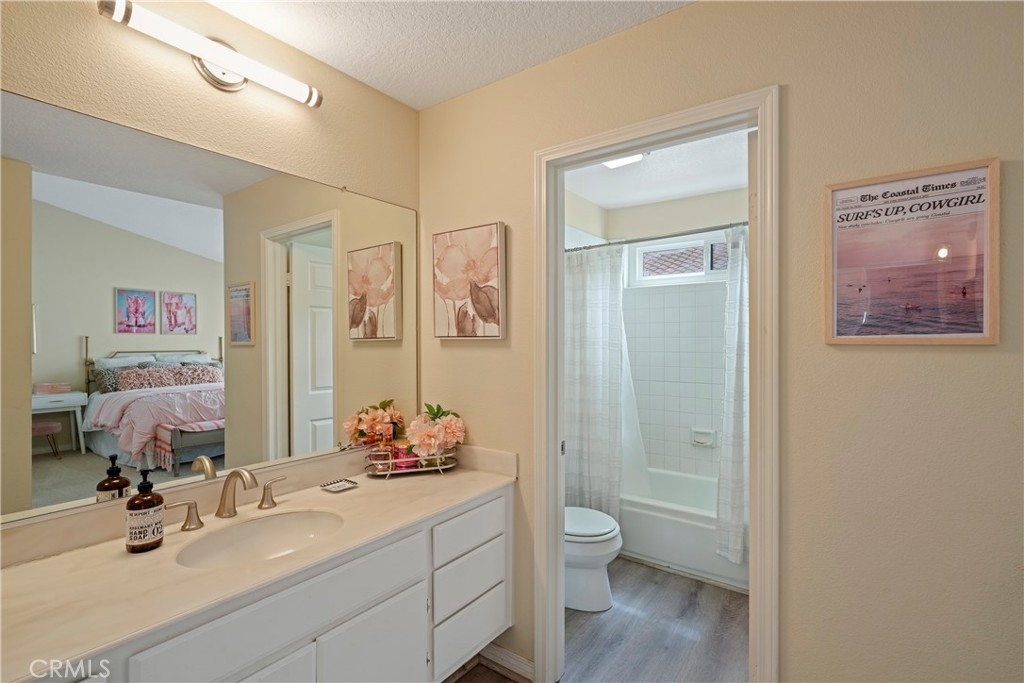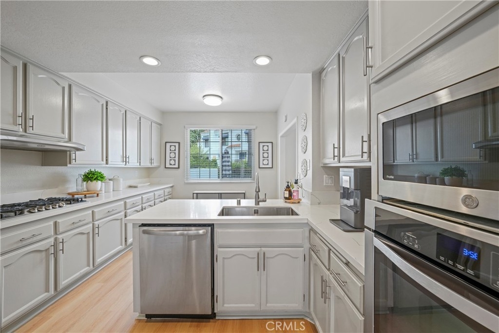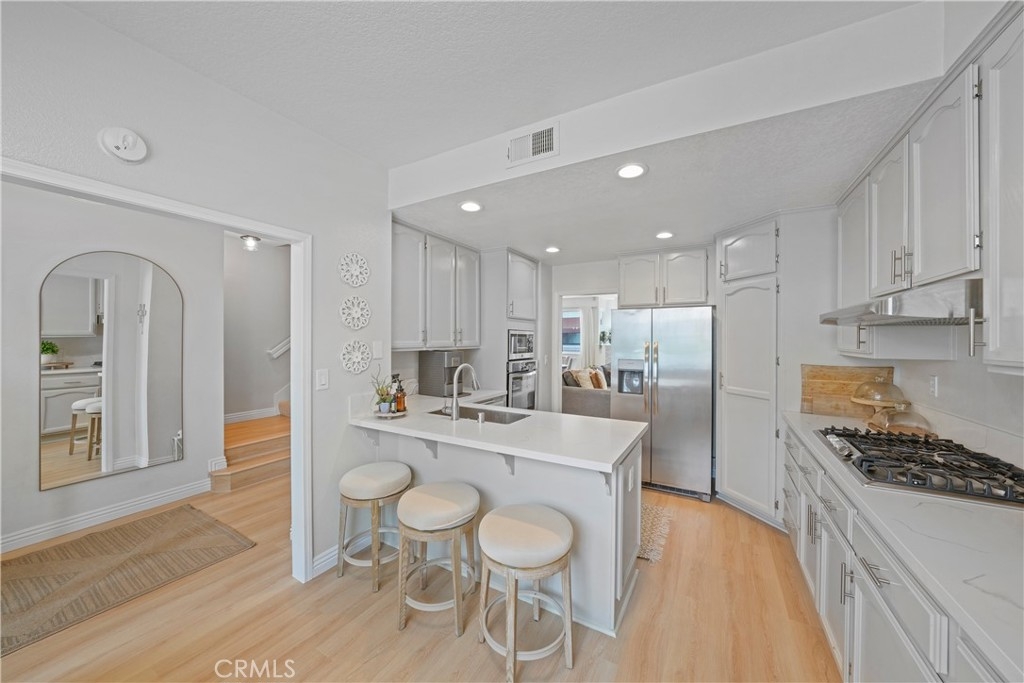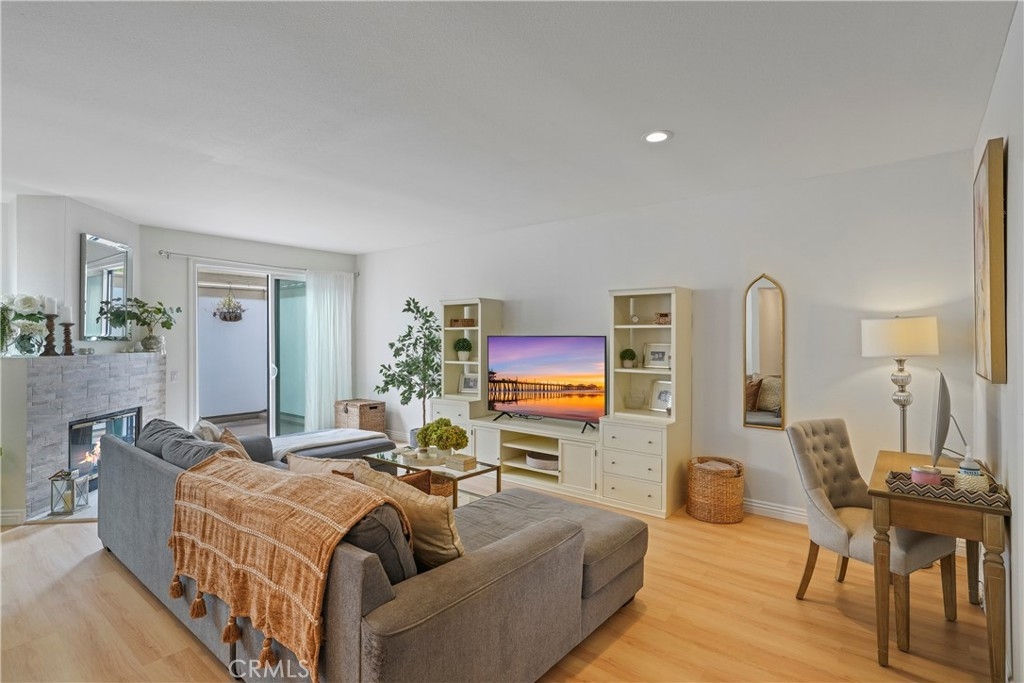 Welcome to 19581 Pompano Lane #107, a stunning tri-level “Capri Plan” townhome located in the highly desirable guard-gated community of Pacific Ranch in Huntington Beach. This move-in ready 2,125sf home offers 3-bedrooms and 2.5 bathrooms, tastefully upgraded with fresh paint and new flooring throughout. The kitchen, featuring modern finishes flows into the spacious living room, which includes a cozy fireplace and sliding doors leading to your private, enclosed balcony. Upstairs, you’ll find two bedrooms, each with their own en-suite bathrooms. The primary suite boasts a sitting/exercise area and the en-suite bathroom has dual sinks and a large walk-in closet. This floor plan will continue to inspire you as you descend to the lower level you’ll notice the large laundry/utility room with the adjacent bedroom that offers versatility as a third bedroom, a guest room, a home office or as a bonus/game room, the possibilities are endless. This townhome includes an attached two-car garage with an automatic garage door and direct access to the home. This perfectly located home within the extremely well-maintained Pacific Ranch is known for its lush landscaping, multiple pools and spas, and prime location next to the world-famous Main Street, which hosts the annual 4th of July parade and just a mile and a half from the beach and Pacific City, which offers excellent shopping and restaurants. This exceptional property offers the perfect blend of comfort, style, and coastal living.