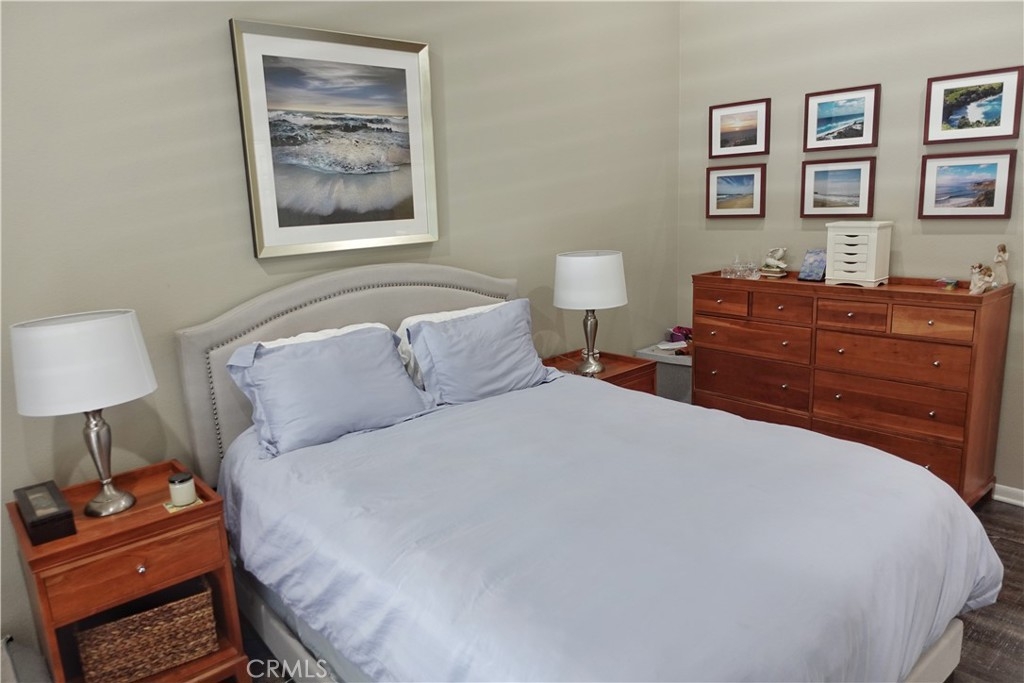 Welcome to this beautifully updated Coronado model condo in the guard-gated Pacific Ranch Villas community. This upper-level, end-unit offers a quiet interior location with peaceful greenbelt views and access to resort-style amenities. Interior Features include vaulted ceilings and large windows allowing plenty of natural light. Recessed lighting and wood-look laminate flooring throughout. Gas fireplace in the open concept living room with access to private balcony and greenbelt views. Updated kitchen with quartz countertops, breakfast bar, and stainless appliances. Primary suite includes walk-in closet, dual vanities, and walk-in shower. The second bedroom is ideal for guests, office, or fitness space. Inside newer stackable washer/dryer along with central heating and A/C. Community Amenities include guard-gated entry, Three pools and spas, clubhouse, walking trails, and lush landscaping. The HOA covers water, trash, exterior maintenance, landscaping, and security. Located less than two miles from the beach, Pacific City and downtown HB. Don’t miss this opportunity to own in one of Huntington Beach’s most desirable gated communities.