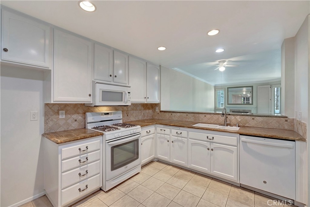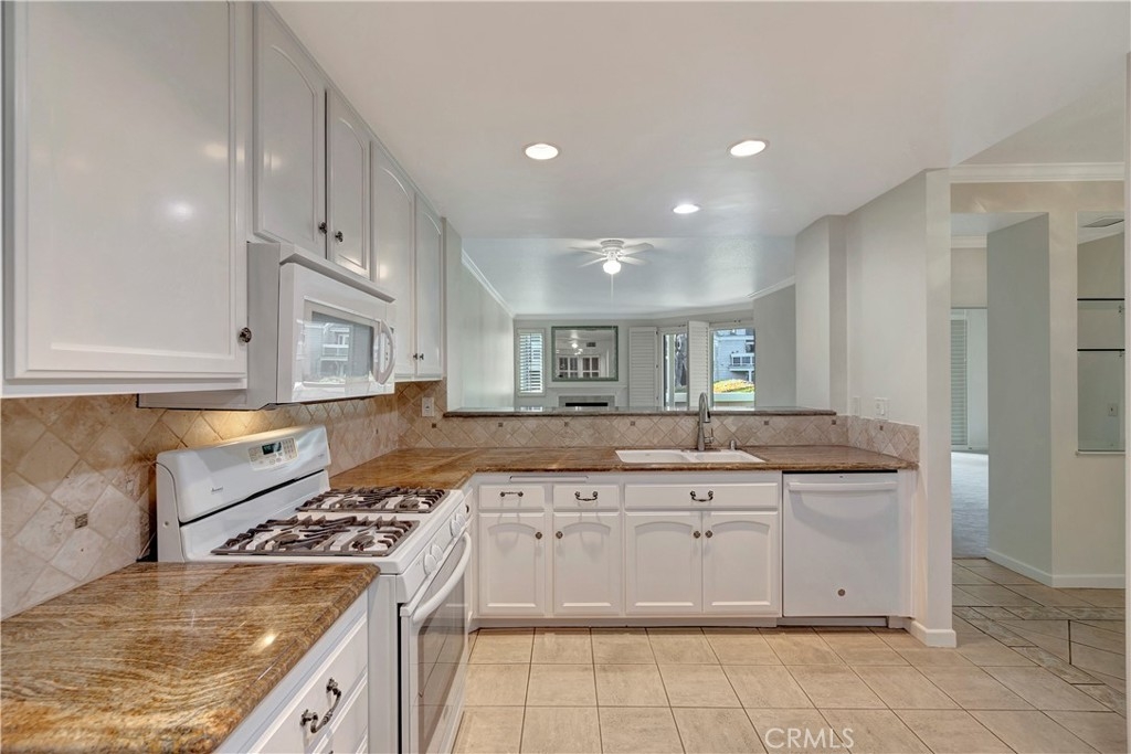 Quiet interior location for this ground-level condo with no interior steps in the ocean-close, guard gated community of Pacific Ranch! This 2 bedroom, 2 bath home features 1164 square feet of living space. Enter the home into a cozy living room featuring high ceilings and a fireplace with sliding doors leading out to the large patio with plenty of room for entertaining and views of the greenbelt. The light and bright kitchen features plenty of storage, a breakfast bar, and kitchen nook looking out to the front courtyard. The primary suite features a sliding glass door leading out to the patio and a large bathroom with dual sinks, a vanity area, and a walk-in shower. The secondary bedroom has a large closet and a custom built-in desk area. Convenient interior laundry room with linen storage. Direct access to single car garage and an additional reserved covered parking spot. Fabulous location within the community with plenty of guest parking, facing serene greenbelt and the front door is on street level. Pacific Ranch features several community pools & spas and is just minutes from the ocean, shopping, dining, entertainment and award-winning schools!