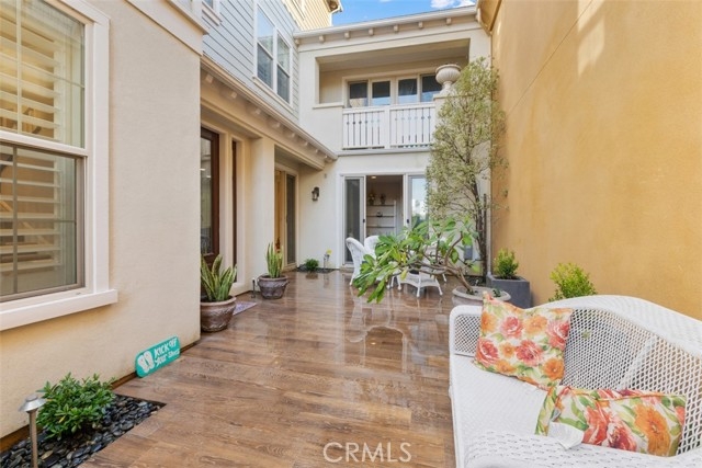 End unit located on the perimeter of gated community five hundred yards from the beach! This turnkey home with an elevator is situated on the first row of houses with an ocean view, wetlands view, hotel skyline view, and two balconies where you can relax with an ocean breeze on a hot summer day. The location has no other homes facing it and a beautiful greenbelt right next to it. This 3,763 sq ft model 2 villa has 4 bedrooms plus a loft, 5 bathrooms, with one of the bedrooms on the first floor. The third floor loft has a built in bar and wine refrigerator ideal for entertaining. The home's interior features high-end finishes, high ceilings, and high-quality materials and fixtures throughout. The chef's kitchen has all Kitchen Aid appliances with minimal usage. Enjoy dining or lounging in the spacious courtyard with potted plants on a low-maintenance drip system. Each of the 4 bedrooms has a full bathroom. Second-floor laundry room. Pacific Shores is a gated community with an association swimming pool and takes great pride in the lush landscaping. Note: the wetlands are a protected area, and the state of California has approved a conservancy and complete redesign of the wetlands. Top-rated schools and close to downtown Huntington Beach and Pacific City.