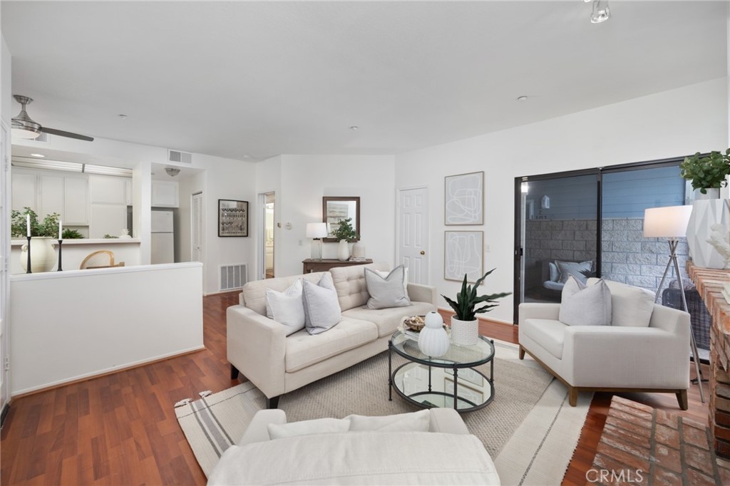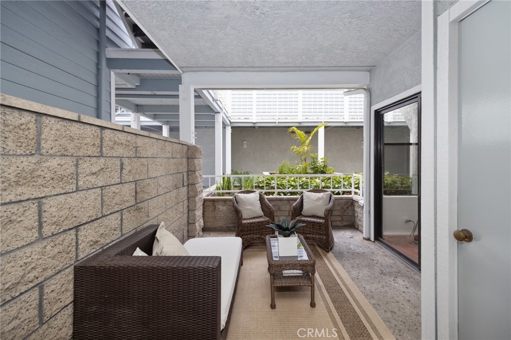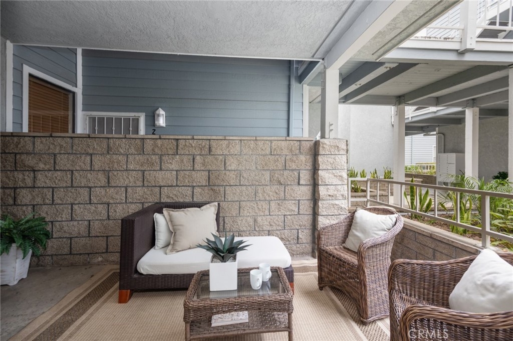 What a find! A beach-close home in Huntington Harbour and NOT on leased land!!! Discover this charming condo, ideally located near the ocean and within walking distance to shopping, hiking, and biking opportunities. Situated in a quiet and private part of the community, this downstairs home boasts a large west-facing patio, perfect for enjoying a cup of coffee and the fresh ocean air. The open floor plan features high ceilings and plenty of windows, making the space bright and inviting. The living room includes a large slider leading to the private patio, and the bedroom has its own slider access as well. The kitchen is equipped with a gas stove and a convenient bar area, ideal for casual dining. This move-in ready condo offers plenty of storage with large closets, an inside laundry closet, and laminate flooring throughout. Stay comfortable year-round with the ceiling fan and enjoy the added convenience of reserved, secured covered parking with additional parking available. Community amenities include a pool, spa, clubhouse, gated entrances and elevator. And with a recently completed comprehensive exterior renovation, you can enjoy a beautiful and well-maintained home, inside and out! Living here, you will enjoy an active lifestyle with nearby Bolsa Chica Wetlands and Brightwater trails, as well as Sunset Beach, where you can explore restaurants, kayaking, and shopping. Walk or bike to the beach to make the most of your summer, and take advantage of the Huntington Harbour Mall just across the street, featuring Trader Joe’s, restaurants, shopping, and banking. This delightful condo is an exceptional find. Don’t miss the opportunity to make it your own and enjoy living in beautiful Huntington Beach!!!